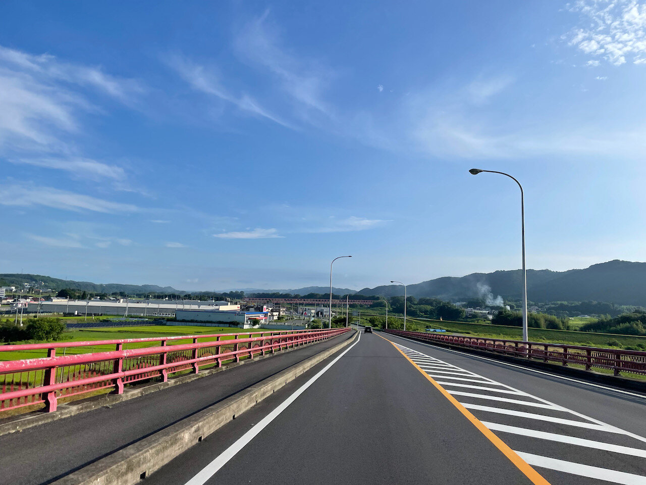 那須烏山の中心部をサクッと抜けたら、河岸段丘から飛び降りるように放物線を描いて進む気持ちいい高架道路。