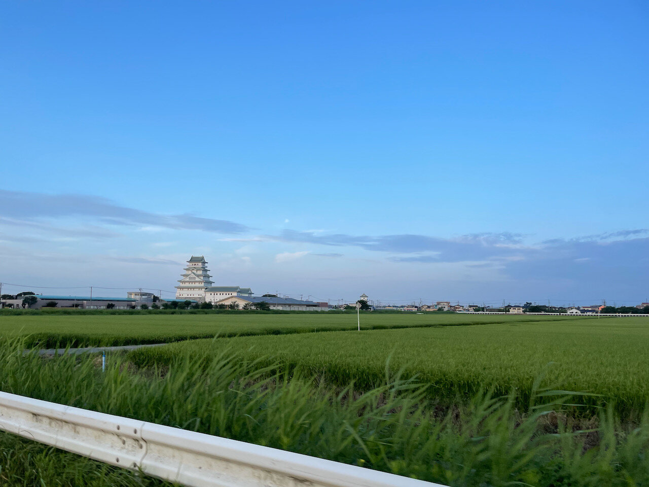 田んぼのど真ん中、唐突に西側に見えてくるお城は、豊田城こと常総市地域交流センター。