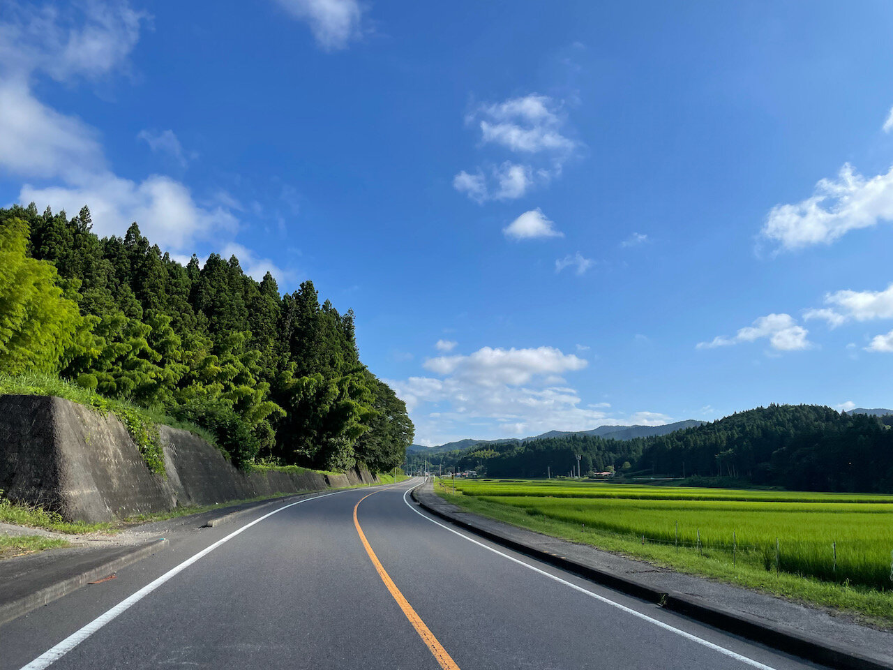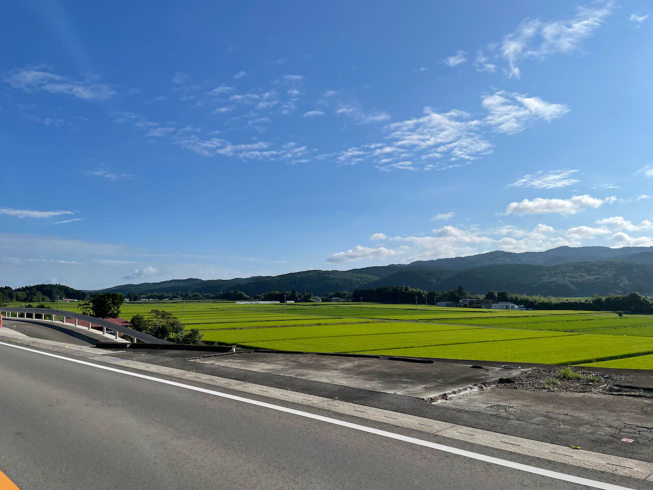 もちろん原生林というわけではなく人の手が入った山並みですし、田んぼもおおいのですが、見渡す限り建造物がない風景が一気に増えます。