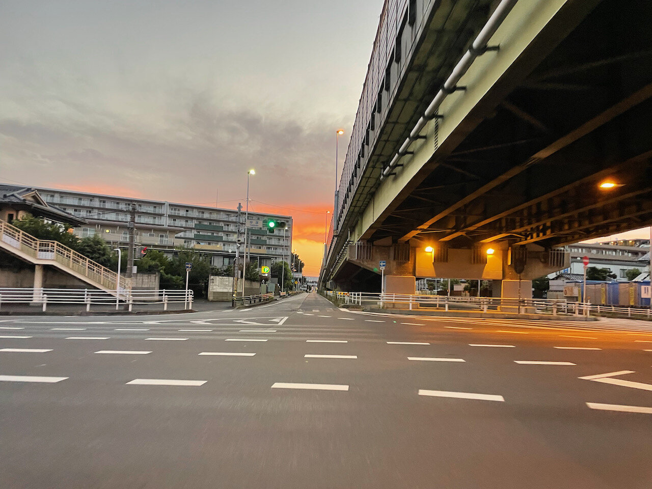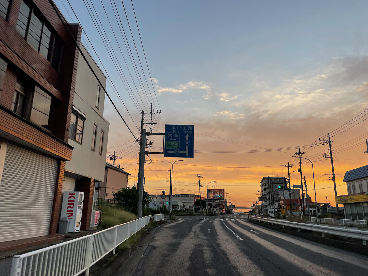 守谷を通過する頃に5:00を周り、北の空は真っ青。