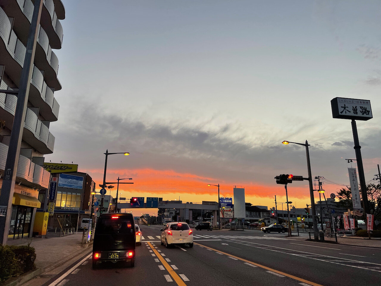 低いところに立ち込めた雲が真っ赤に輝きます。
