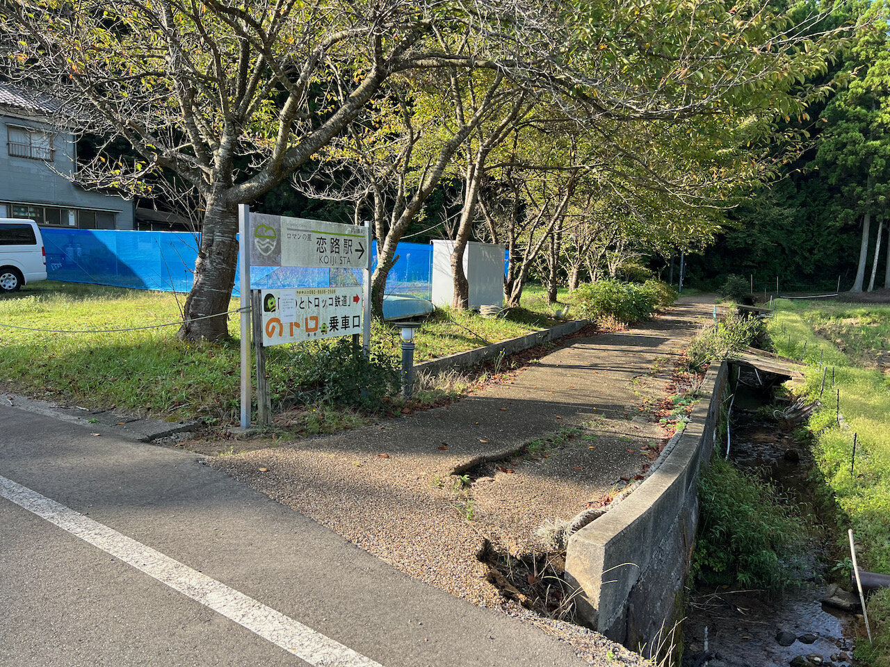 この海岸を背にして内陸を向くと、恋路駅への案内があります。