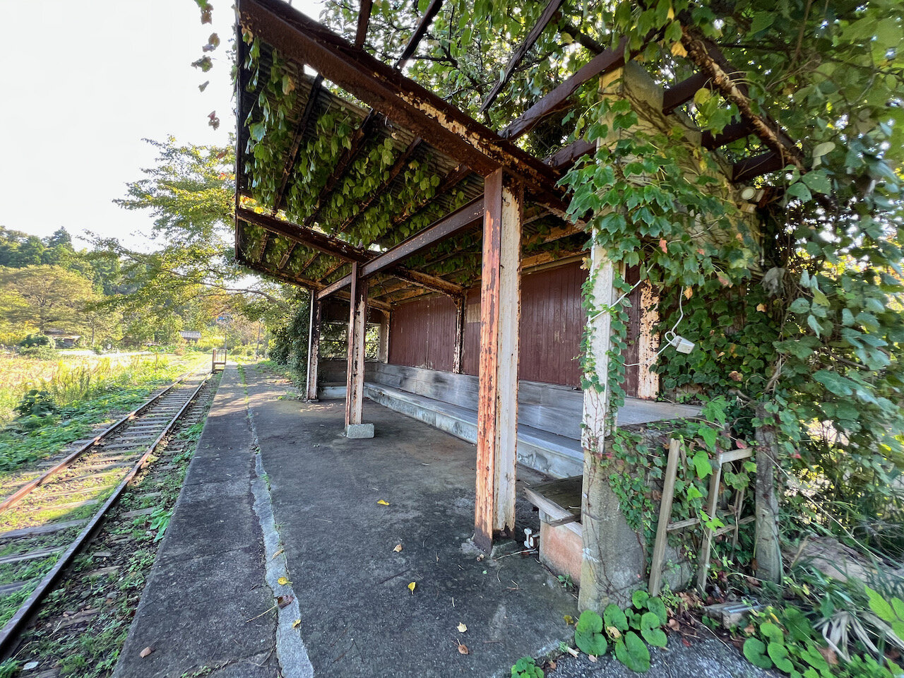 ホームの上屋も完全に朽ちつつあり、呑まれるのも時間の問題。