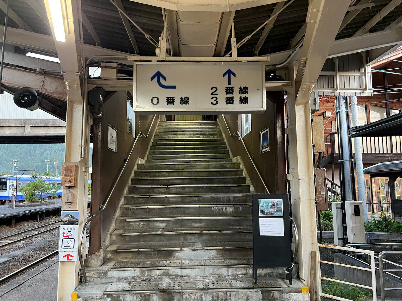 ホームはメインで使われている1番線、隣のホームにある2・3番線、そして跨線橋奥にある行き止まりの0番線の4本です。