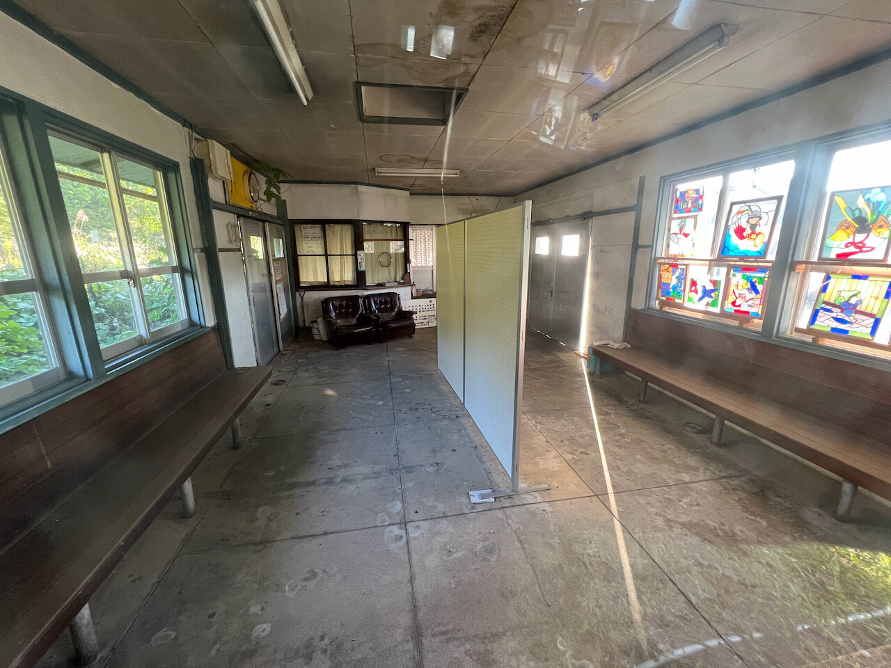 しかし近寄ってみると時代の波は隠せず、待合室の中までしっかり草に飲まれてしまっていました。
