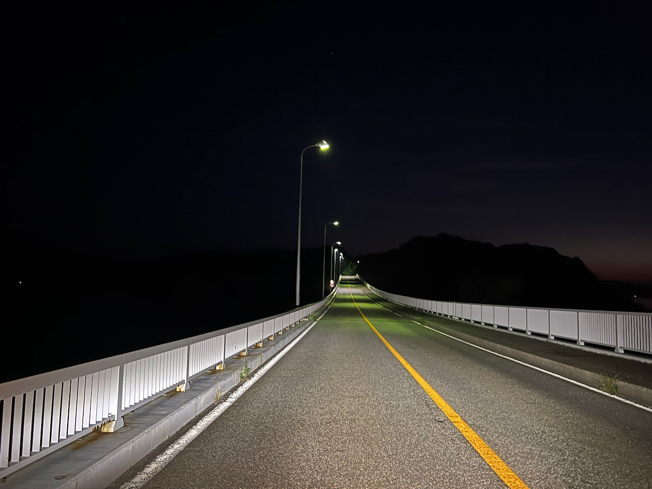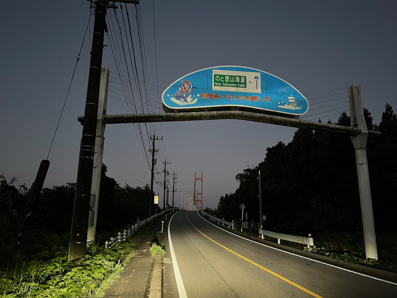 日の出前の真っ暗な能登島大橋をわたって能登島に入ります。