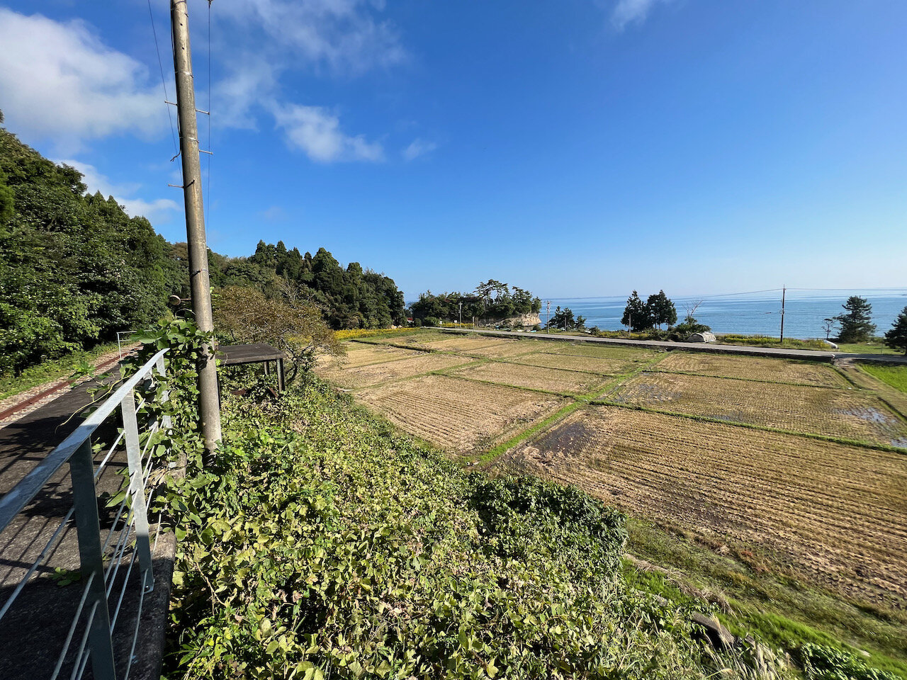 国道を外れて、海の見渡せる台地に登っていくと・・・