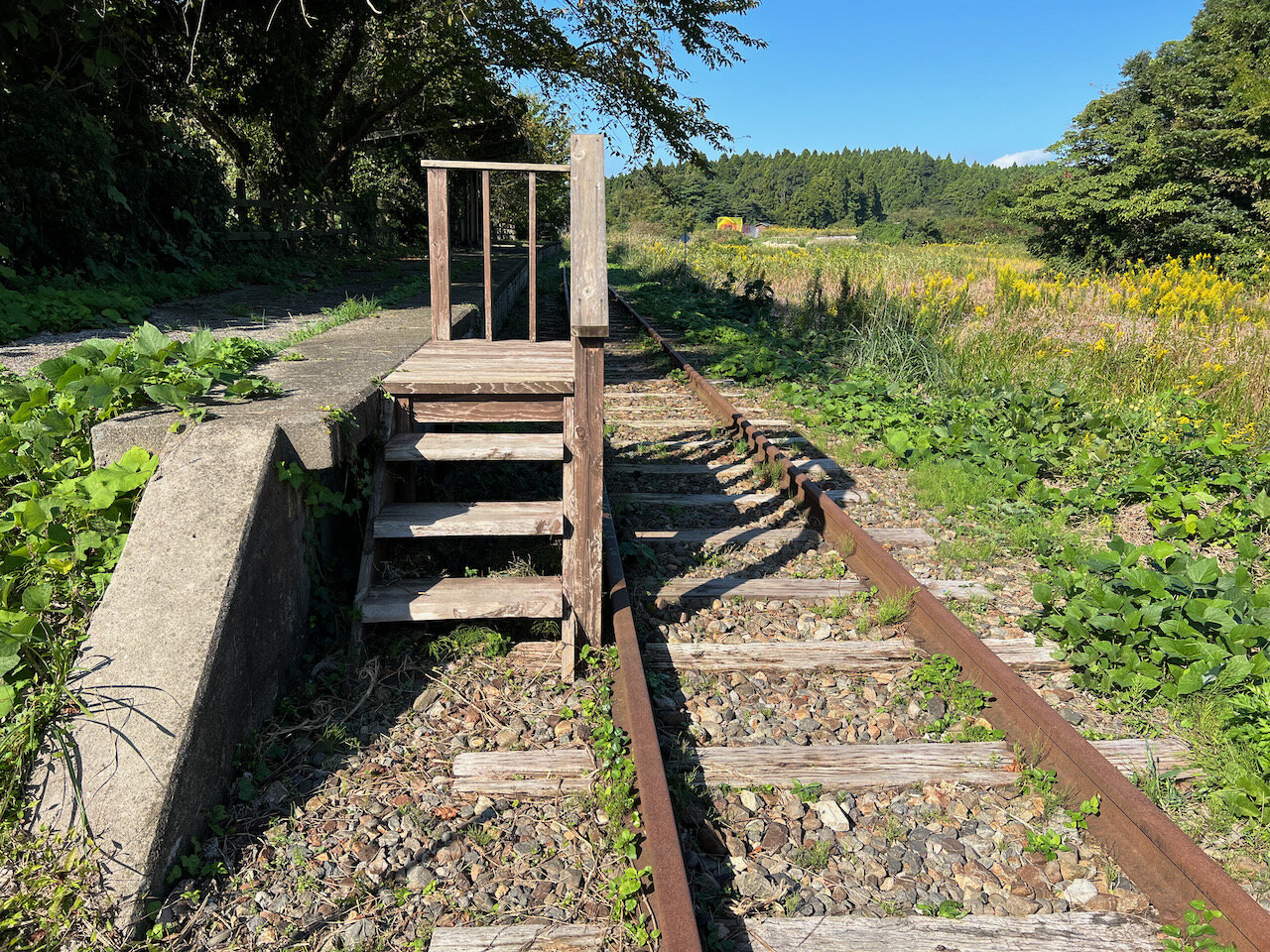 それでも完全に錆び切ったレールと、腐って痩せてきた枕木が、もはや現役のレールではないことを主張します。