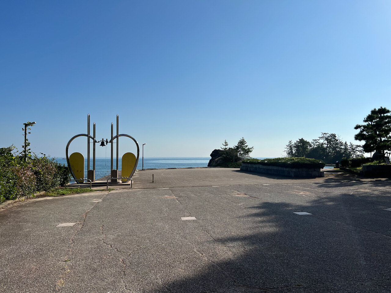 少し走ると、浮かれたカップル向けの縁結びの鐘が設置された恋路海岸に到着です。
