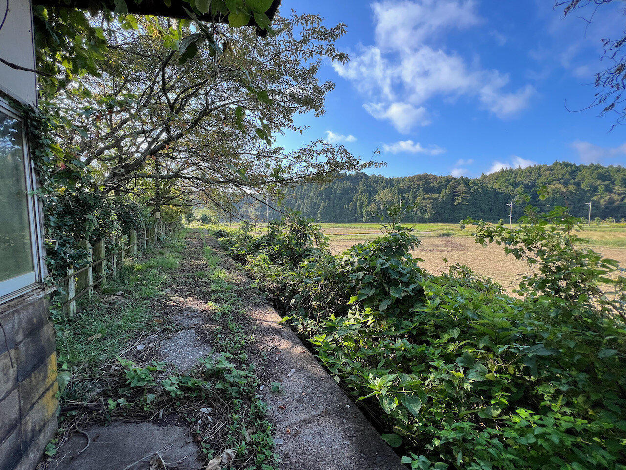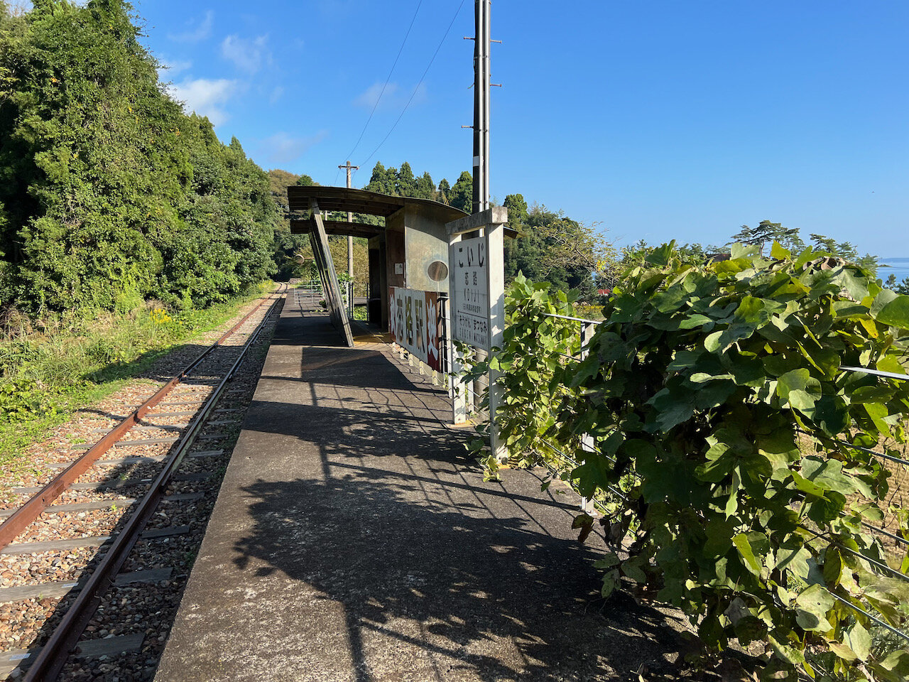 田んぼの中を抜けるさわやかな潮風を感じるこの廃駅、かなりの雰囲気です。