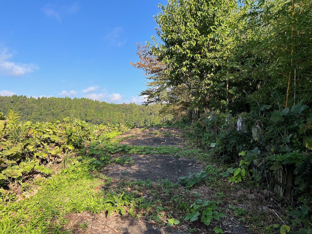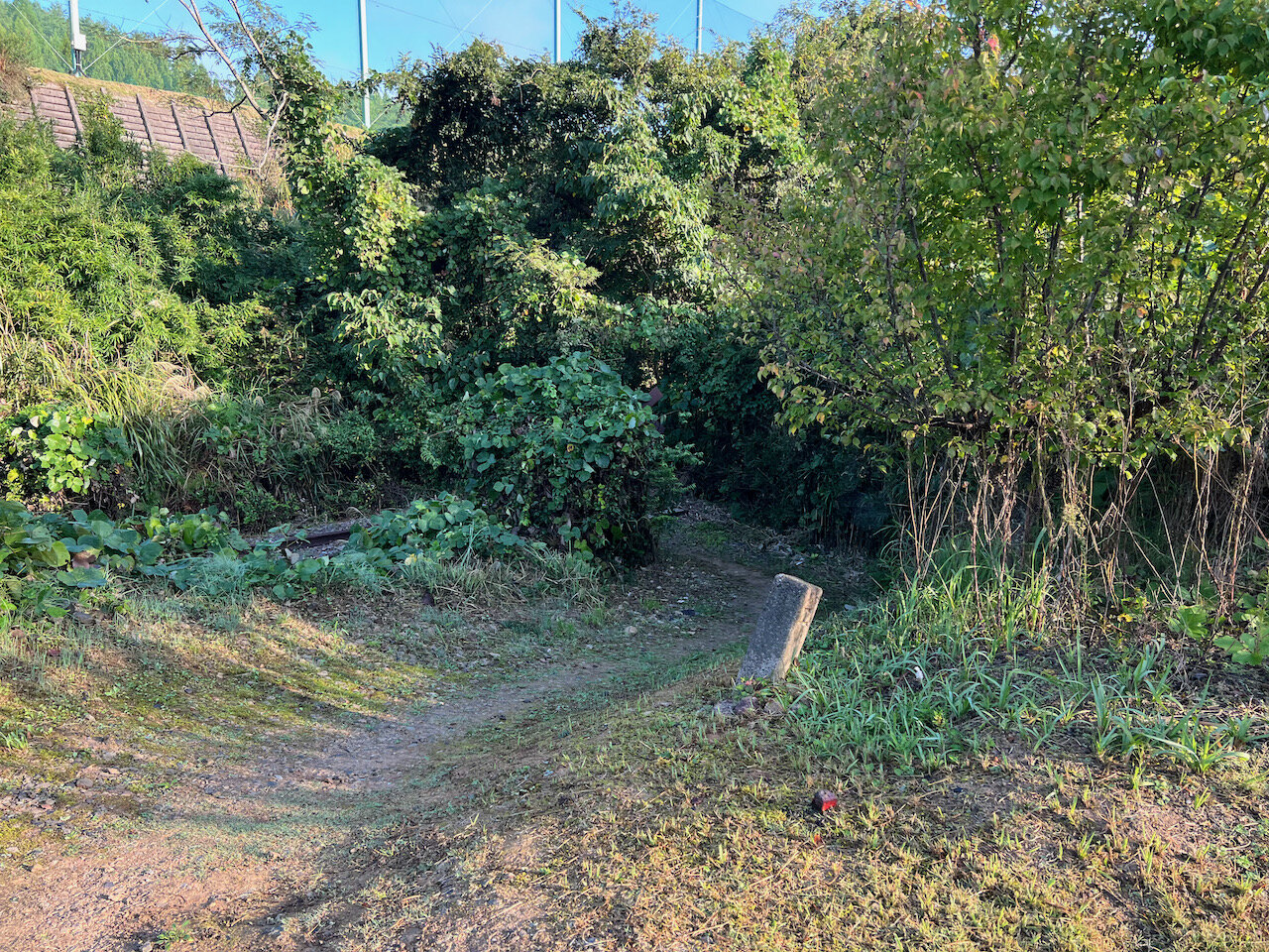 畑を突っ切るように伸びる、地図上でもくっきり見える路盤は、すっかり藪の中。
