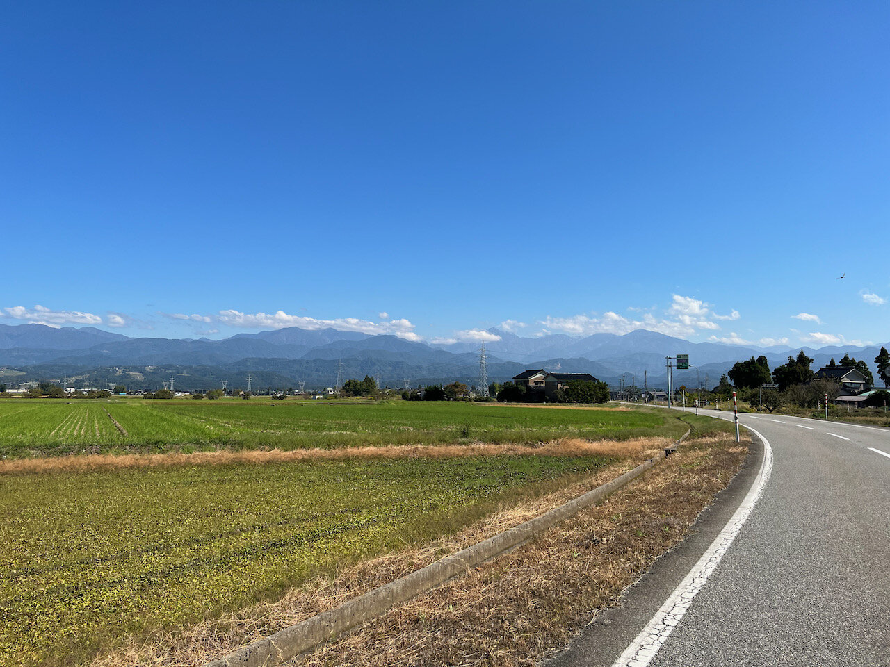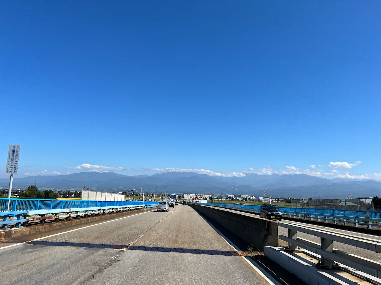 遠くに見える立山連峰へぐんぐん近づいて走り、常願寺川を渡ります。