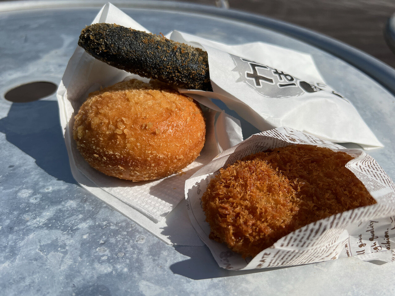 普通のカレーパン、ブラックカレーパン、そしてコロッケです。