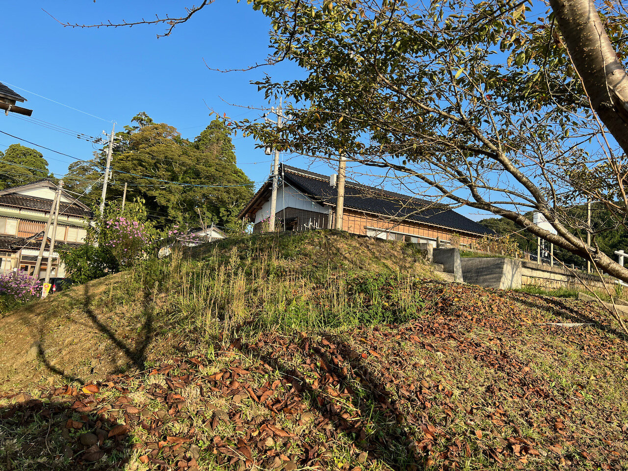 その屋外テニスコートと、山側にあるフットボールコートとの間には不自然に谷が横たわります。