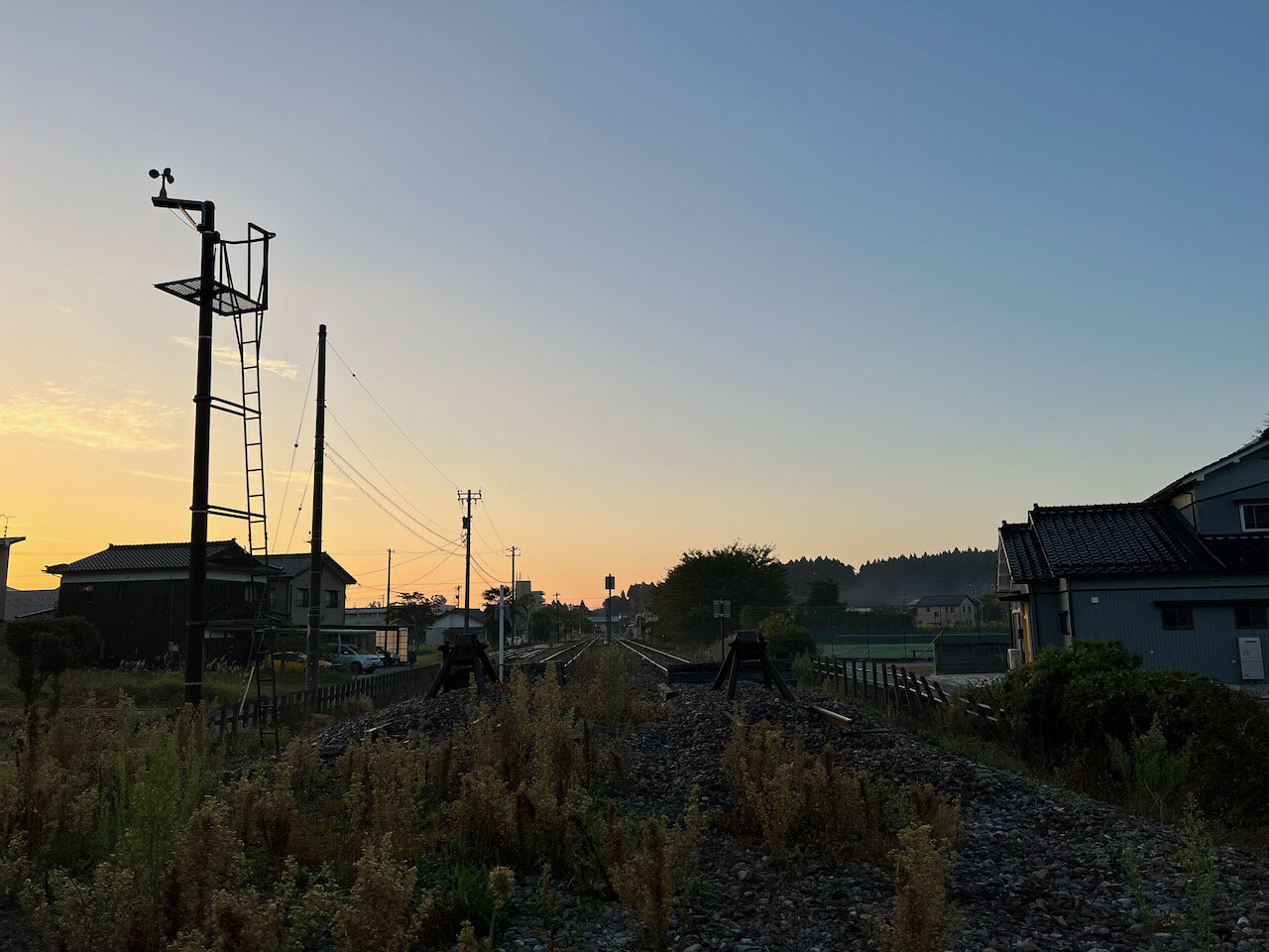 今にもガラガラと音をたててオレンジ色の列車がやってきそうな風景・・・。