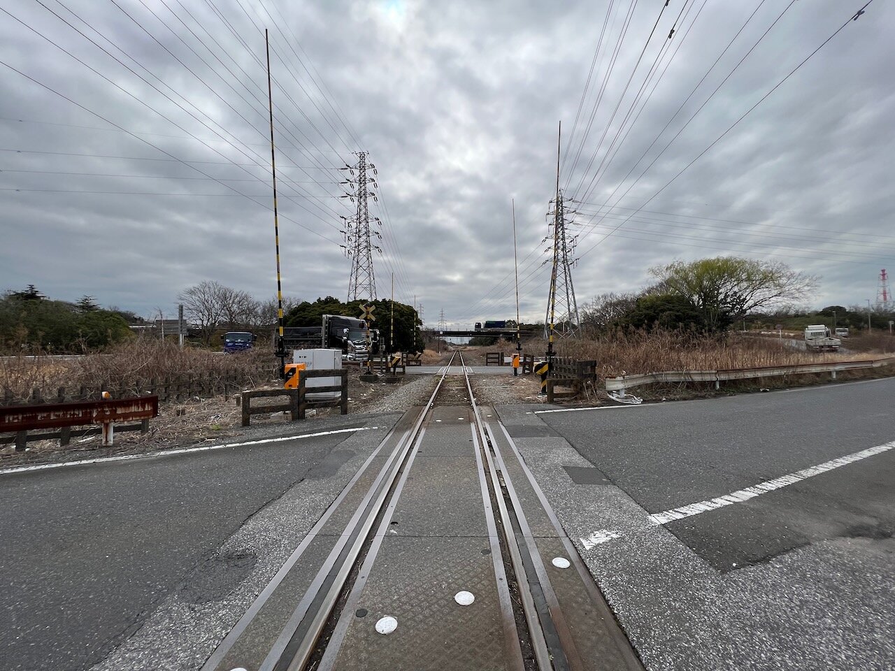 インターチェンジを横切る京葉臨海鉄道の踏切。