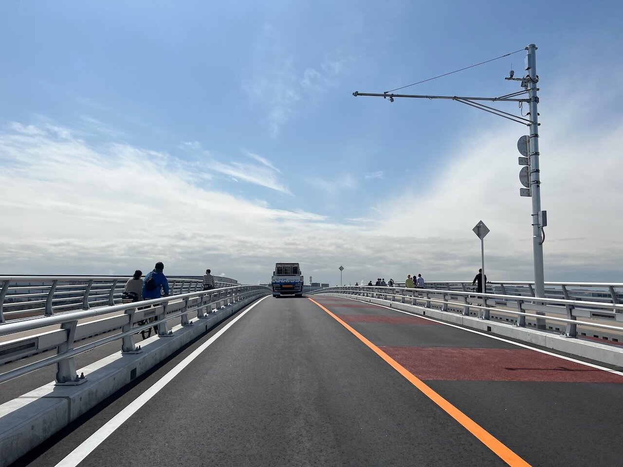 歩道・自転車道も併設されているので歩いて渡ると景色がよさそう。