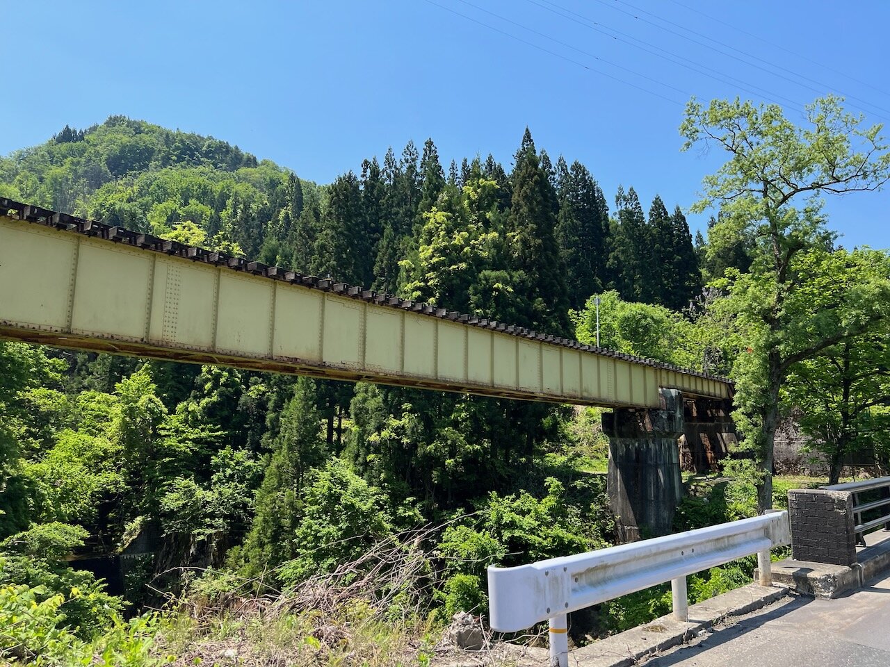 会津塩沢を出てすぐ、国道は一度右岸に渡って左岸に戻りますが、只見線はしぶとく左岸に残ります。