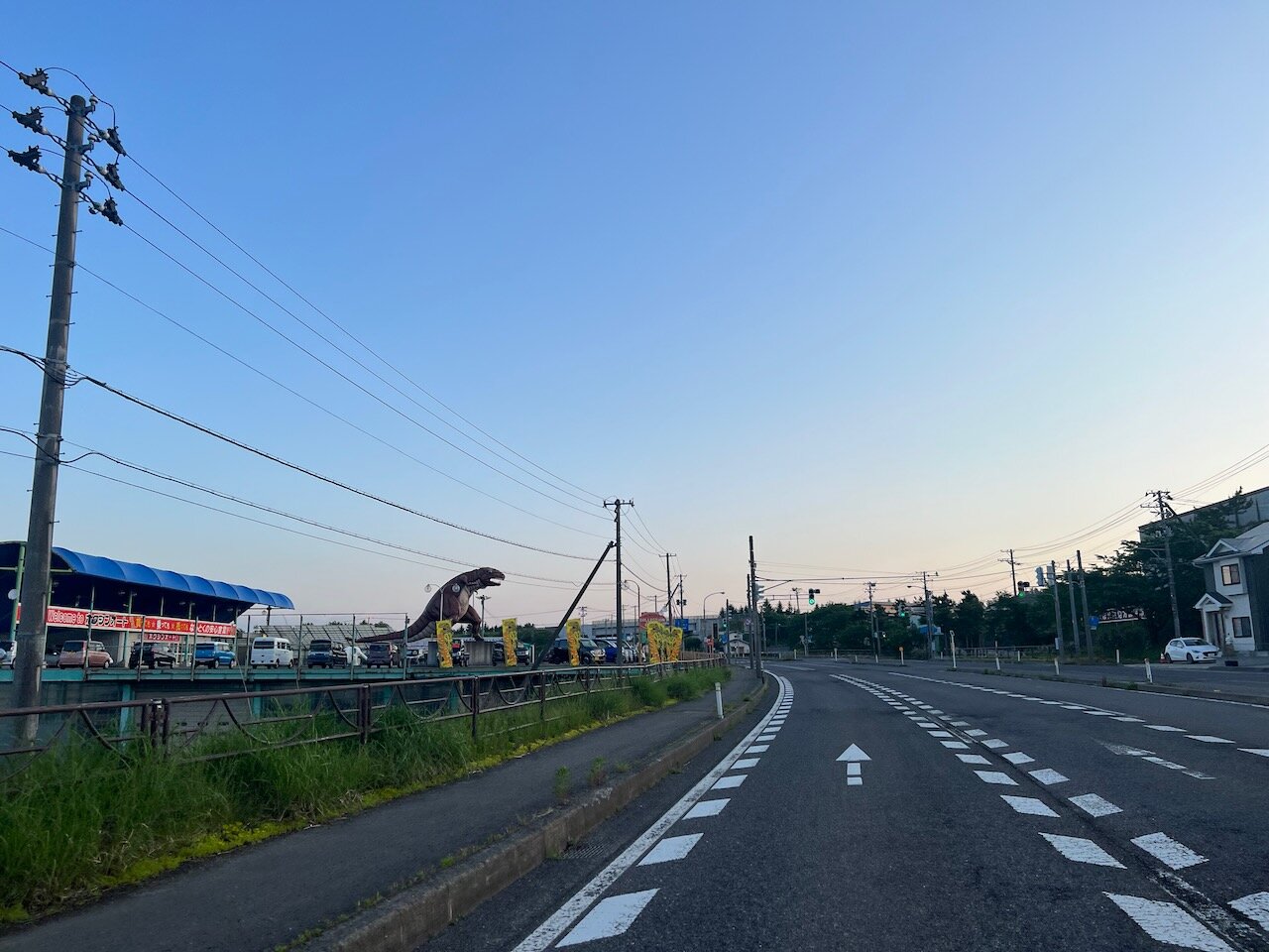 カラッと晴れあがった空に、なぜか浮かぶ恐竜のシルエットを眺めつつ国道49号を走ります。