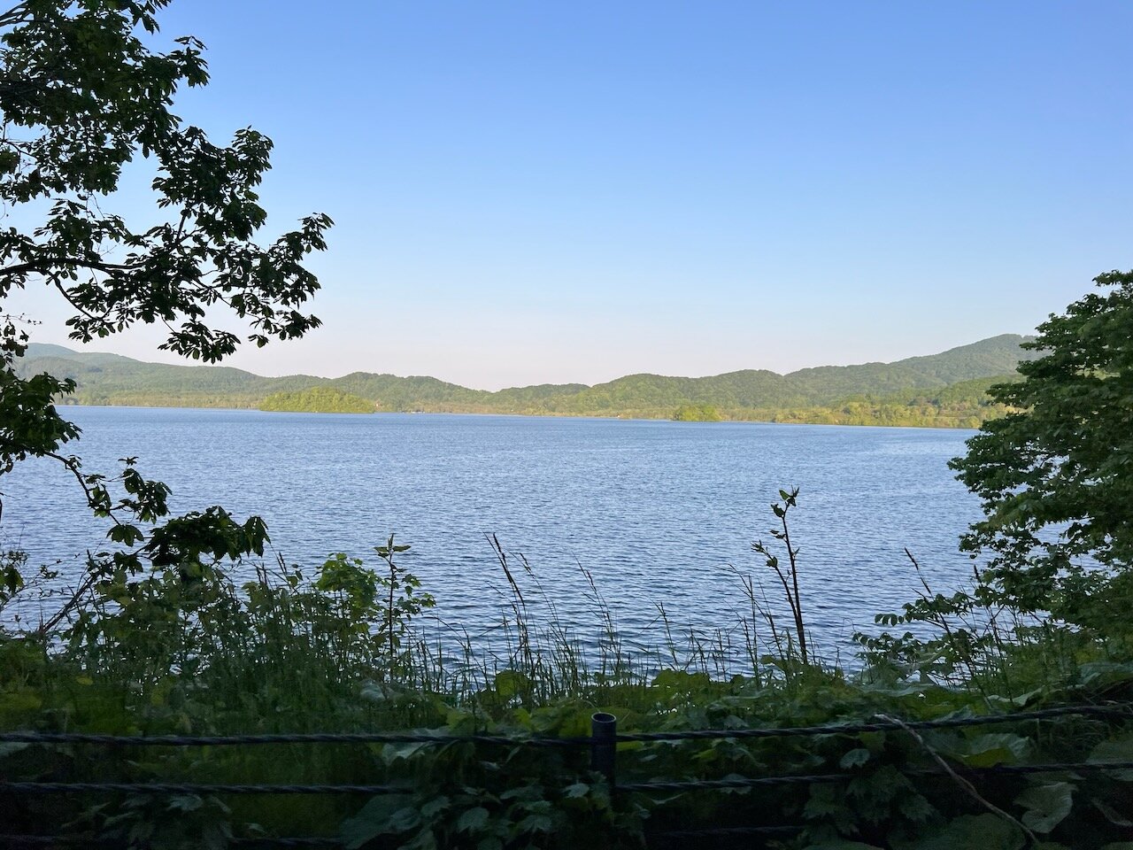 雲一つない空と対をなすように、湖面はしんと澄んでいて、まさに「水鏡」という言葉に相応しい反射。