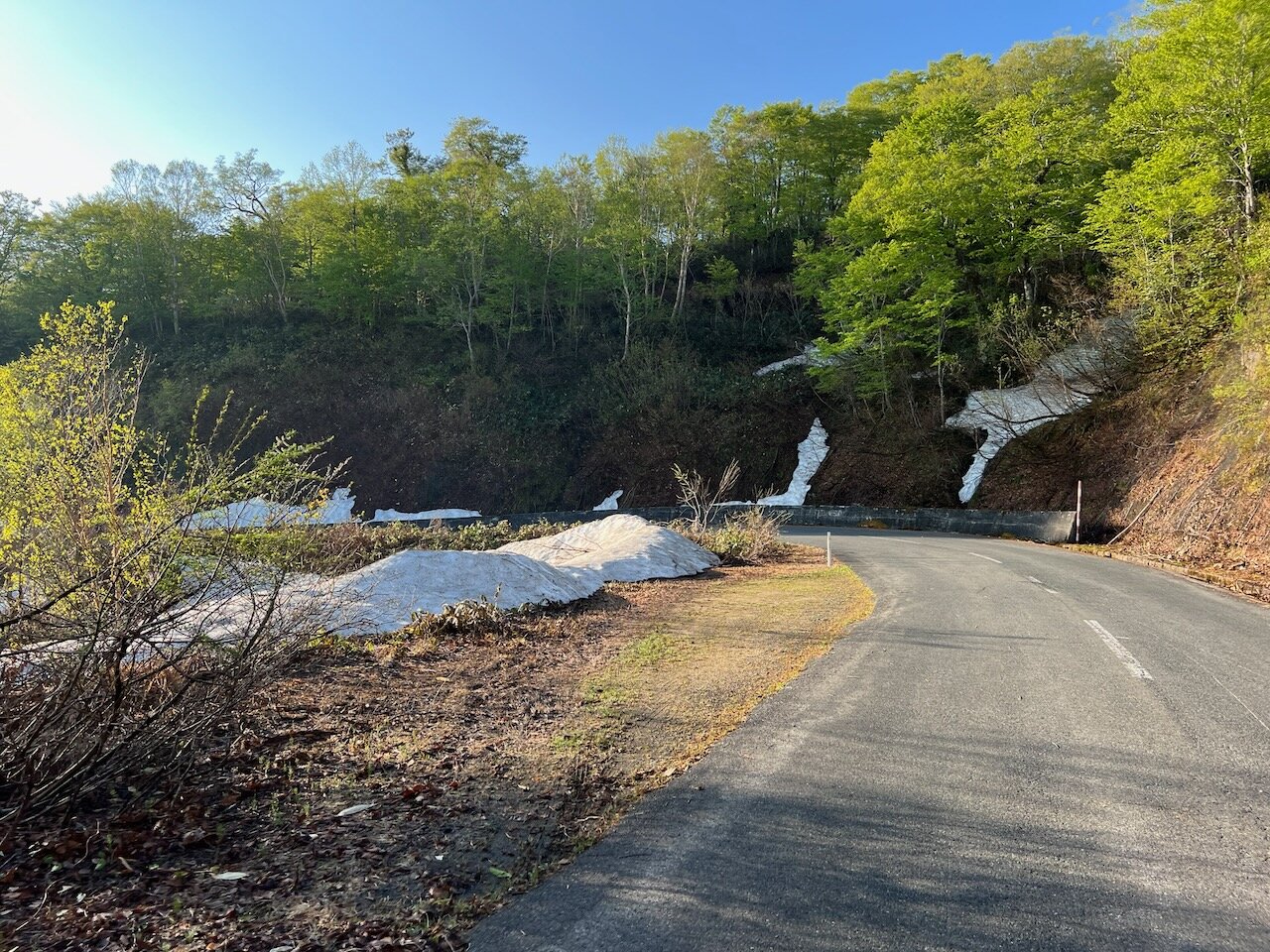 さすがに標高1400mともなると、5月末でも残雪が目立ちます。