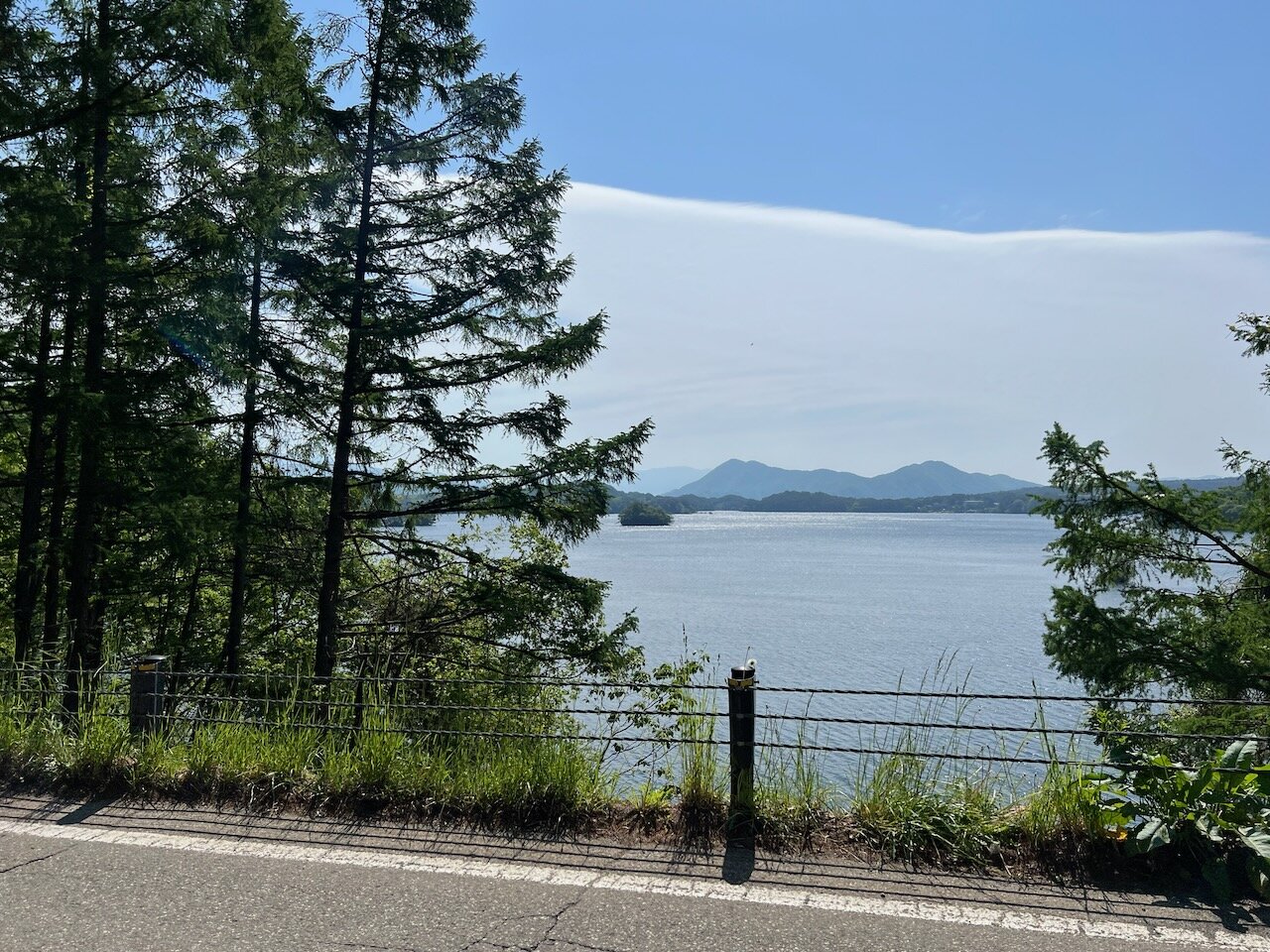 県道2号との交差点で左折、桧原湖の東岸を北へ走ります。