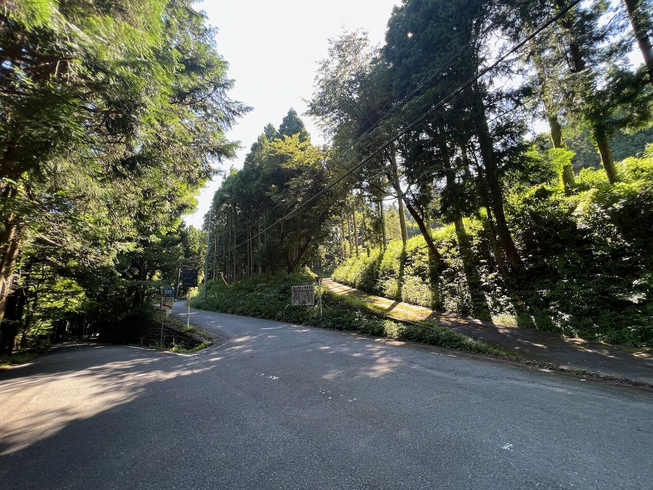 西からやってきた県道63号に一瞬だけ入り、その先で目的の県道389号の入り口。