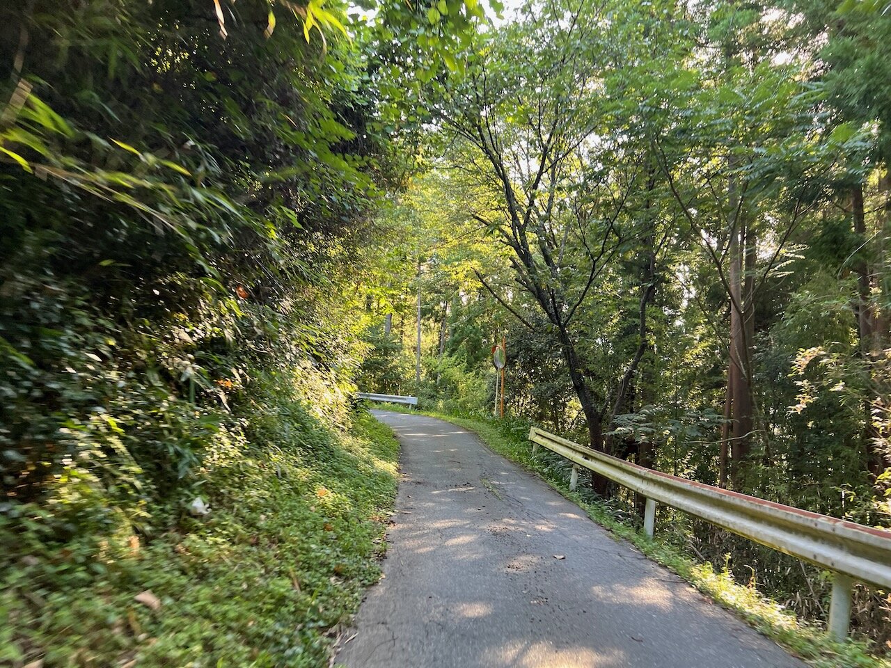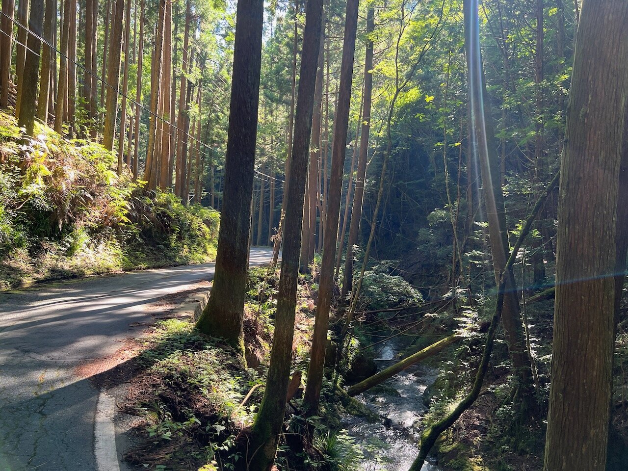 時間もお昼近くなってきたので、木漏れ日も路面を過度に縞々にしません。