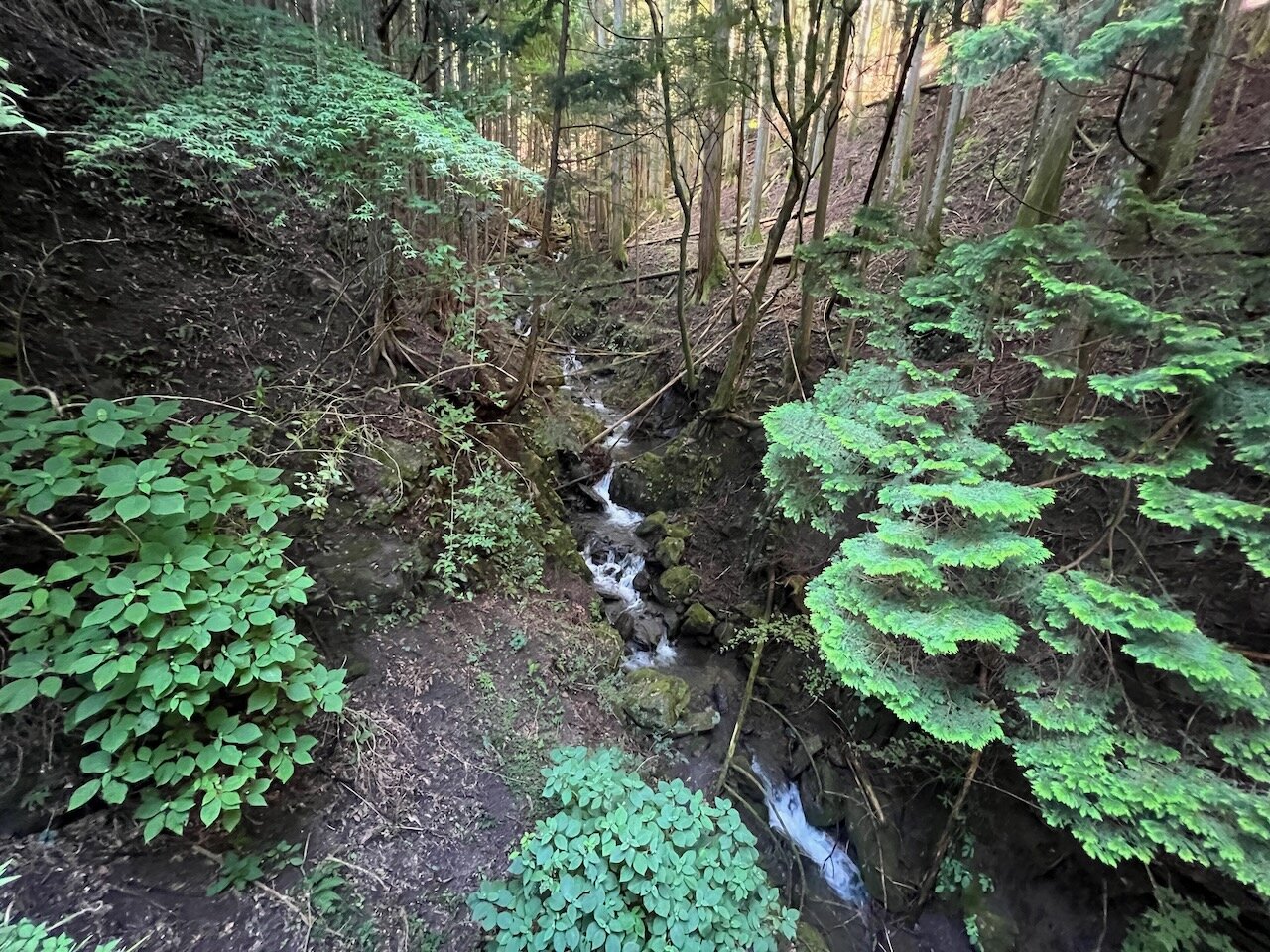 スギ花粉アレルギーの人が見たら卒倒しそうな濃密な杉林の中を抜けます。