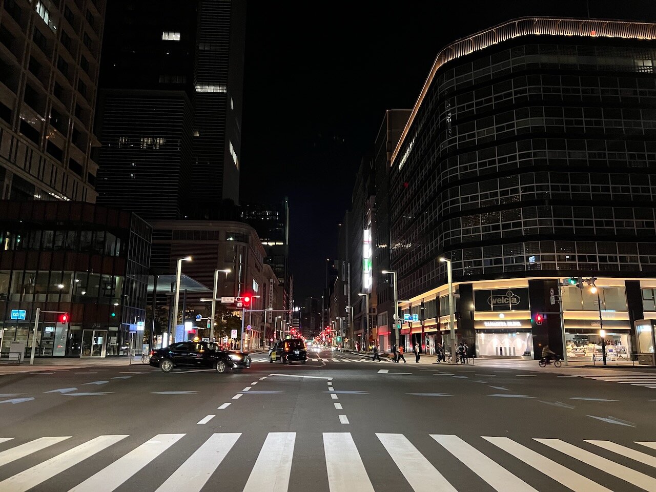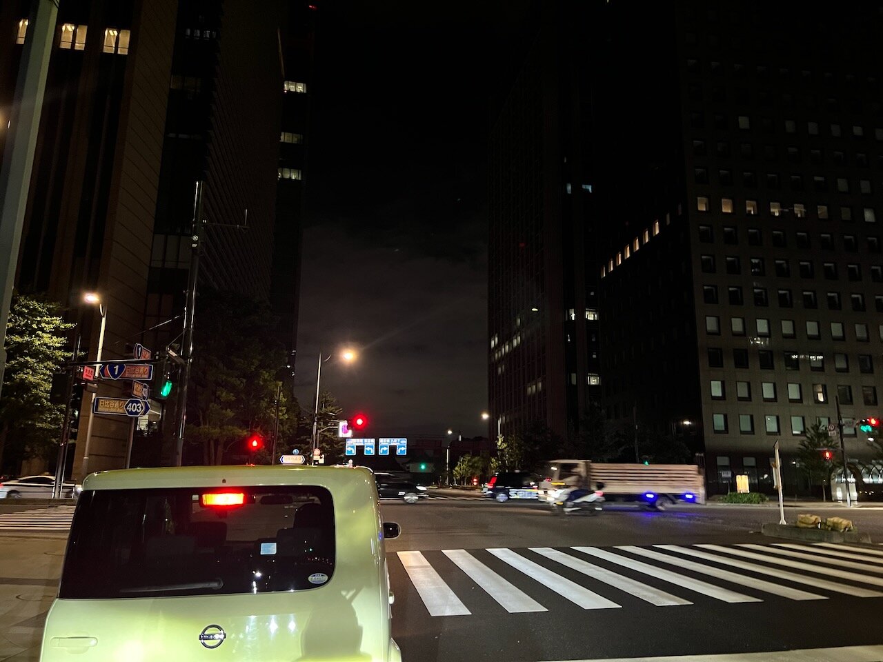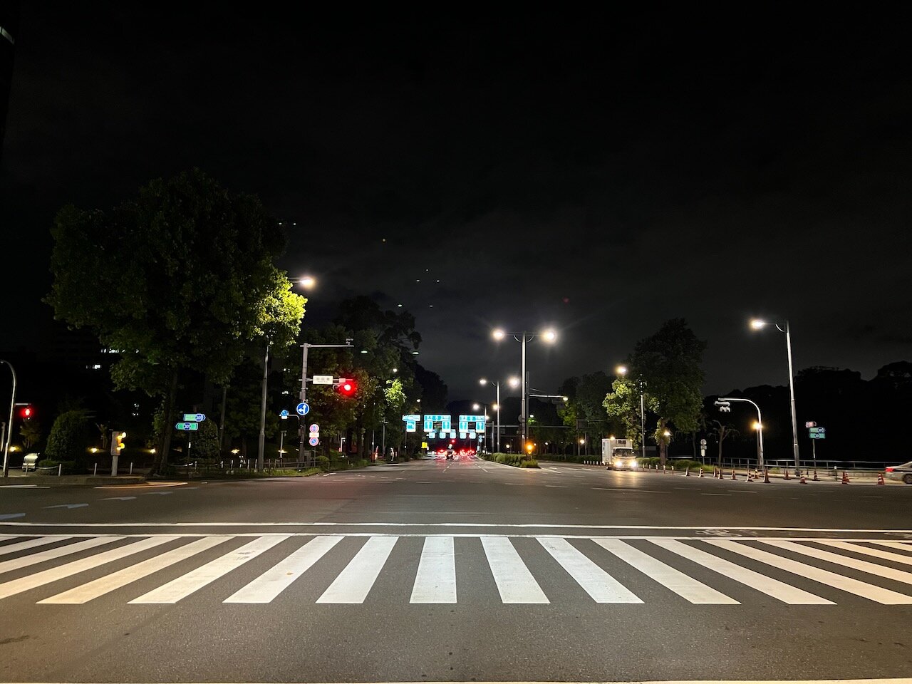 時計は2:30をまわって交通量も減り、道は静寂につつまれますが、煌々と灯った街灯は消えません。