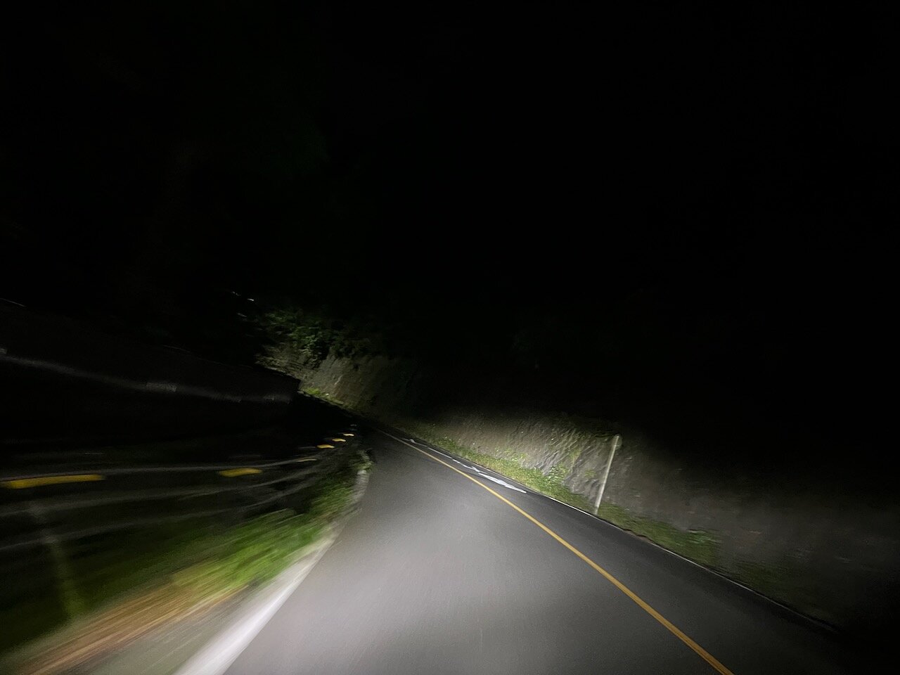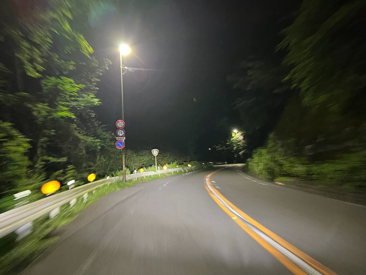 このあたりは流石にライトが頼りですが、午前3:30ながらすれ違う車はそれなりにあり、ずっとハイビームとはいきません。