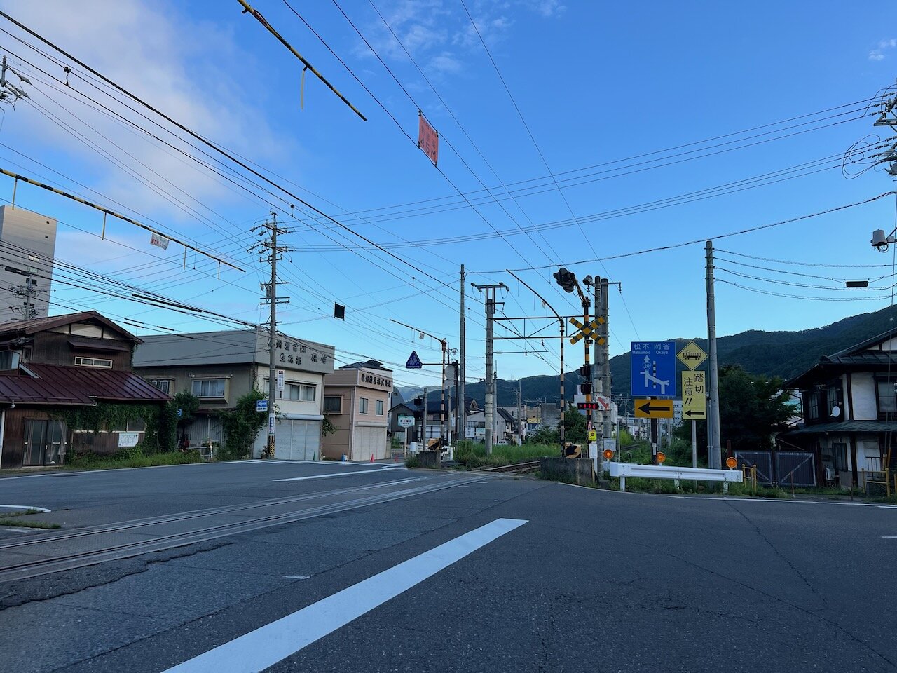 幹線としての面目丸潰れの斜めに突っ切る複雑な踏切を越えていきます。