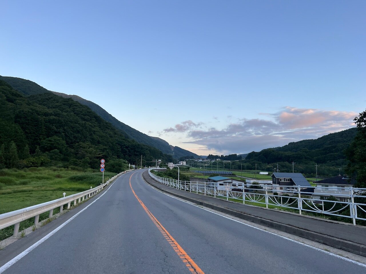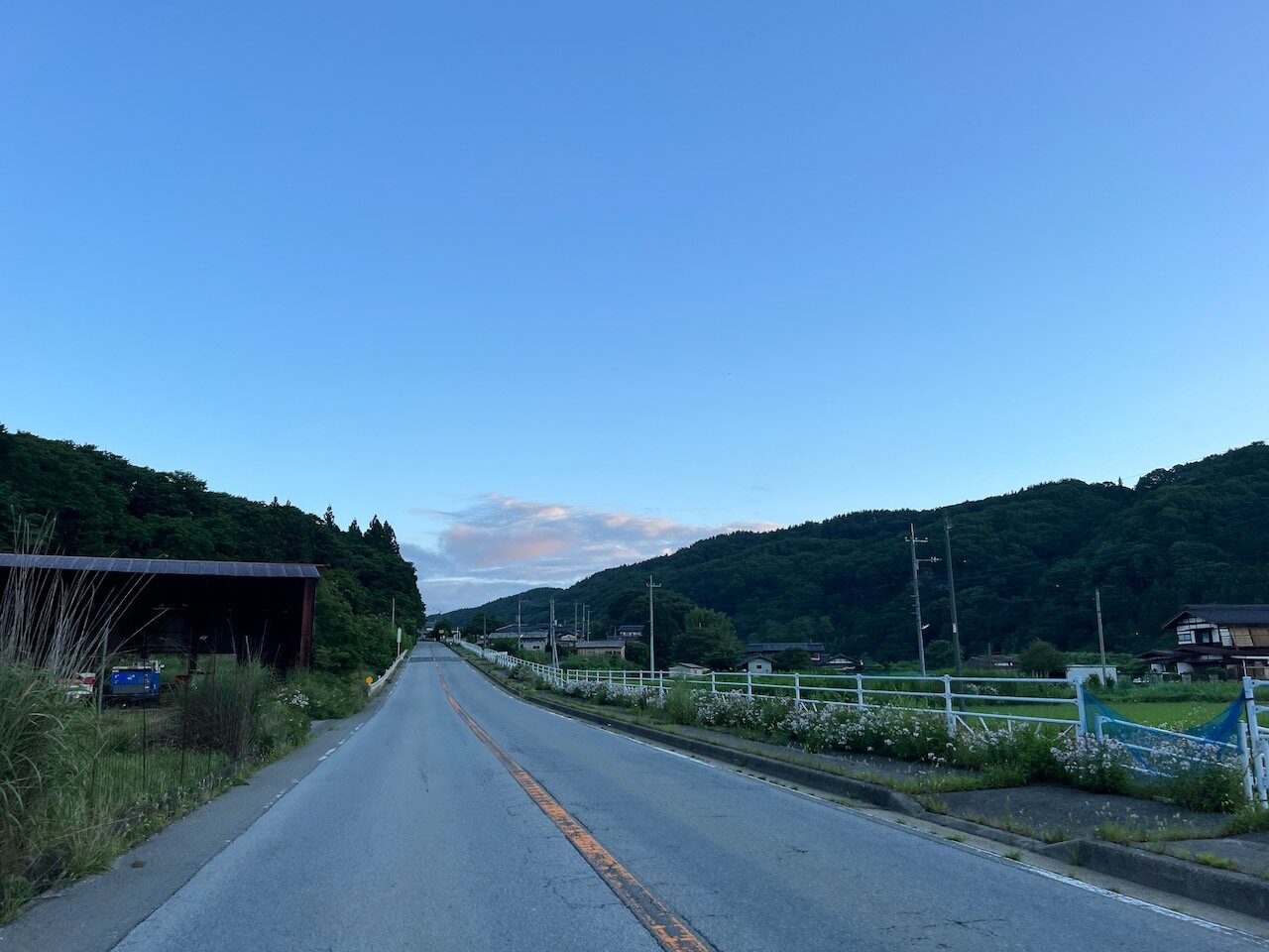 一方で谷底を這う国道の沿道はまだ一面日陰。