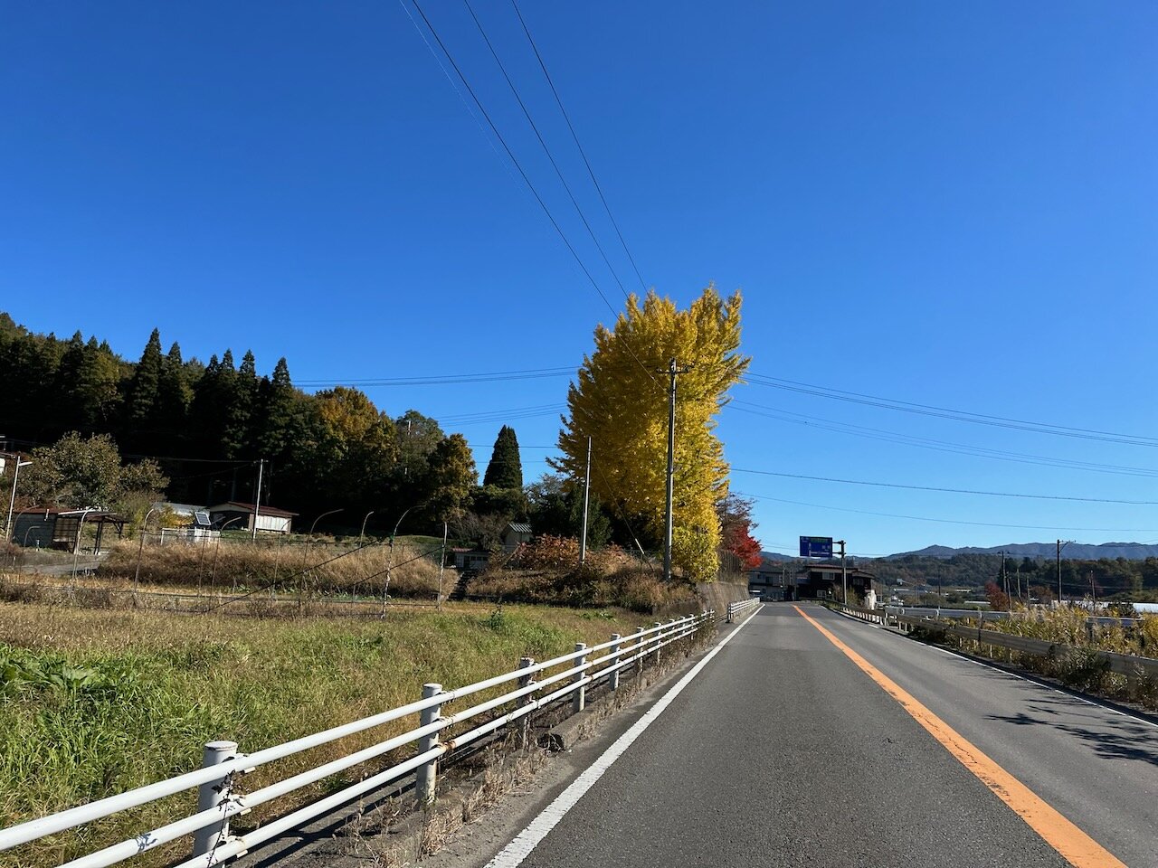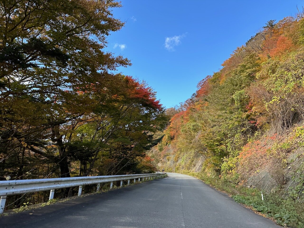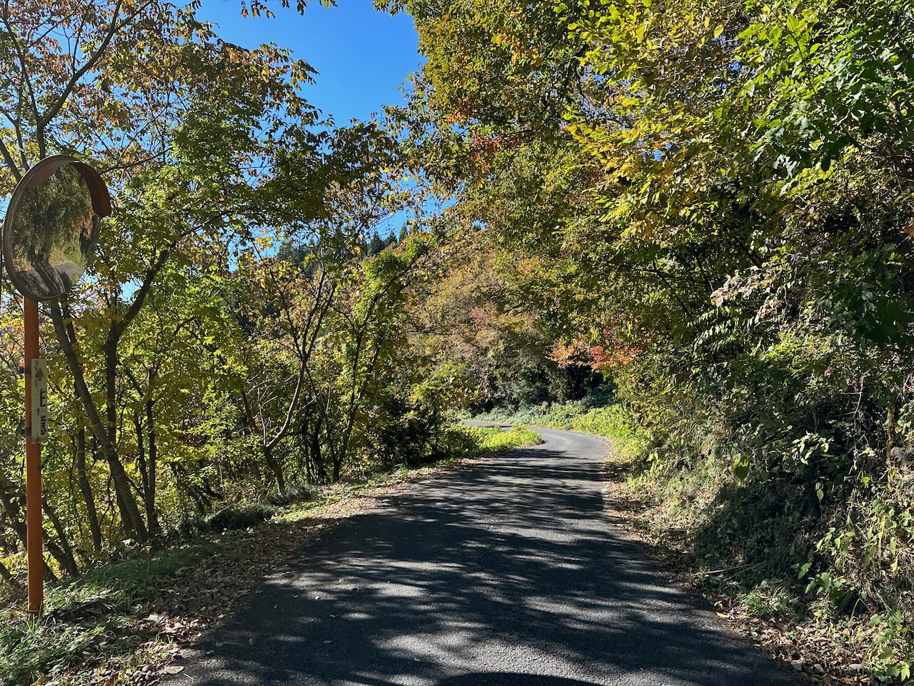 やや落ち葉が多く注意が必要な道を越えて進むと、南相馬から上がってきた県道12号に合流して平地へ。