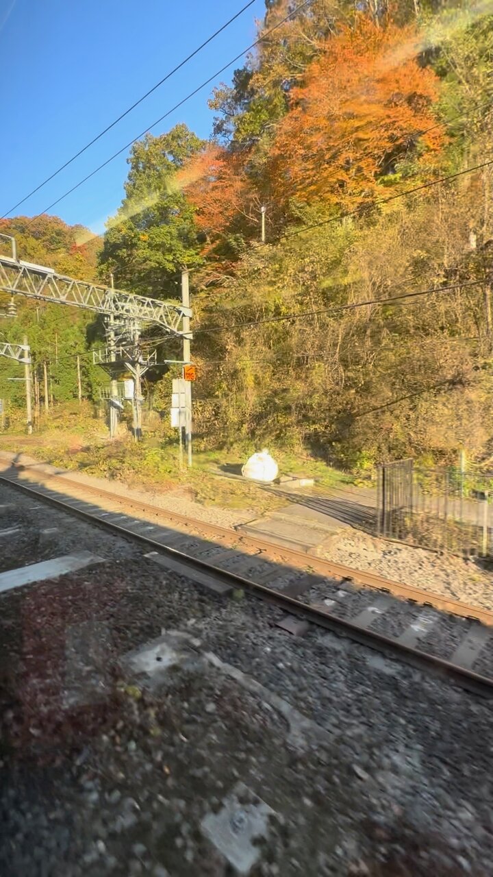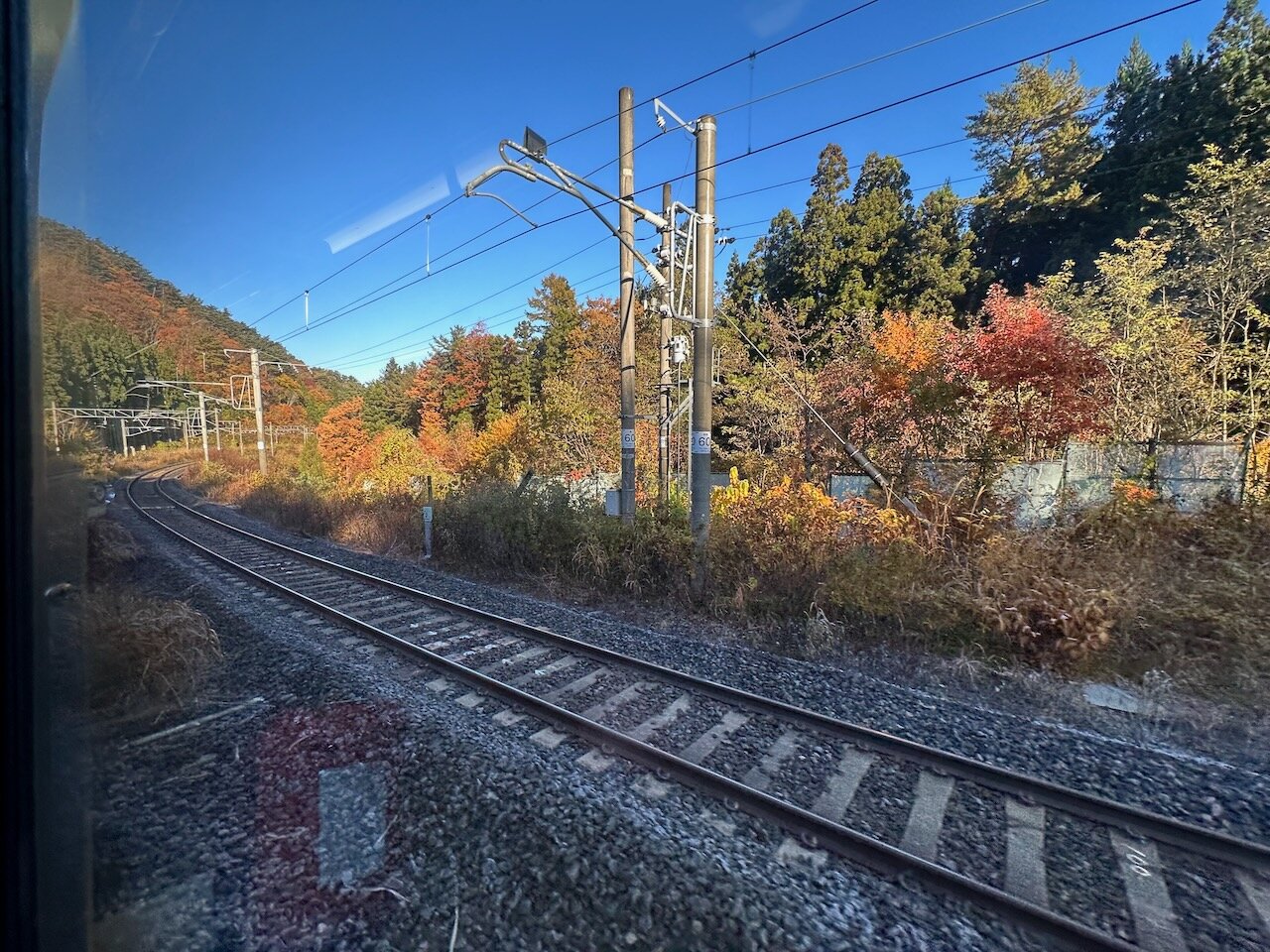 色とりどりな木々の中を右に左にカーブしながら列車は進んでいきます。