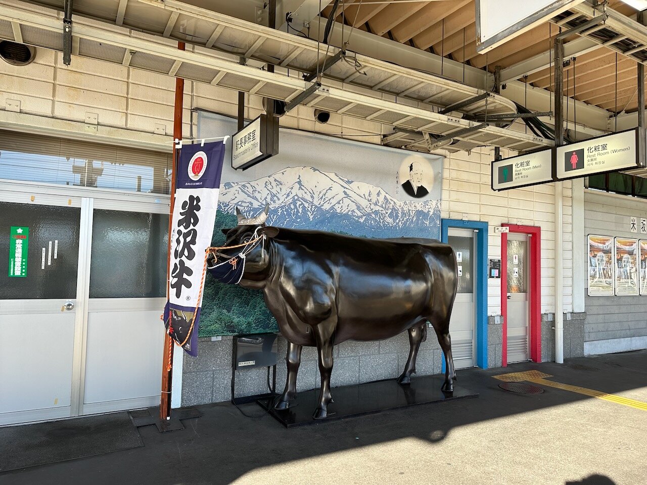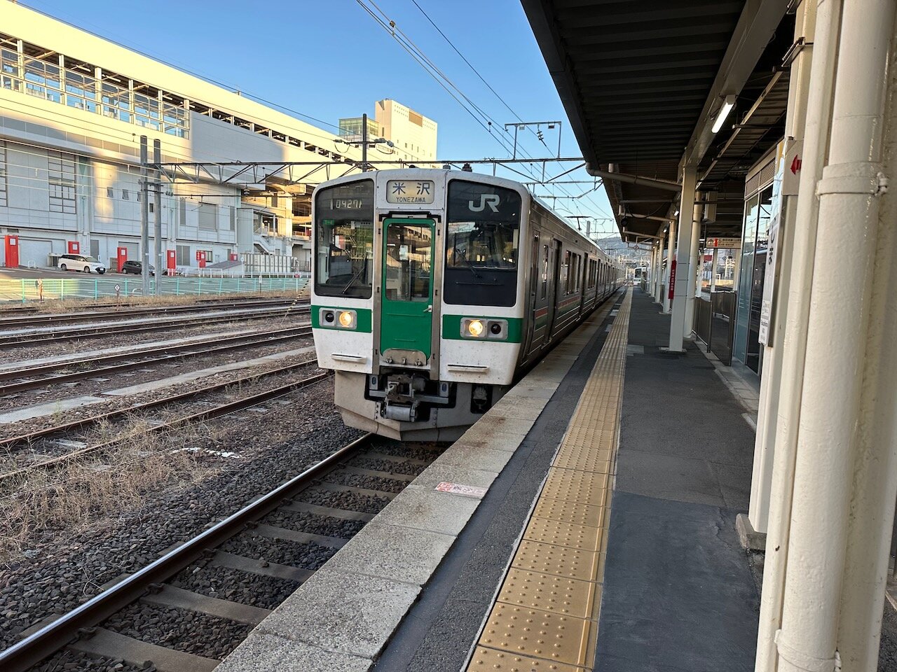 45分ほどかけて7駅を走り、8:00ちょうどに米沢に到着。