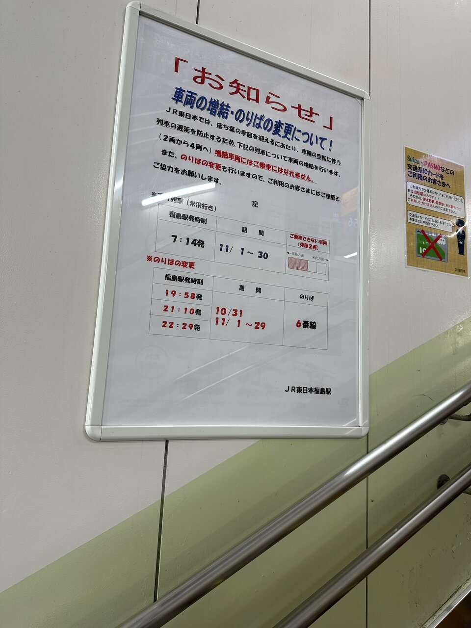 後ろ2両は押し上げのための回送なので乗車不可、さらに空転防止のため、できるだけモーターの付いている米沢方の先頭車両をご利用ください、とアナウンス。