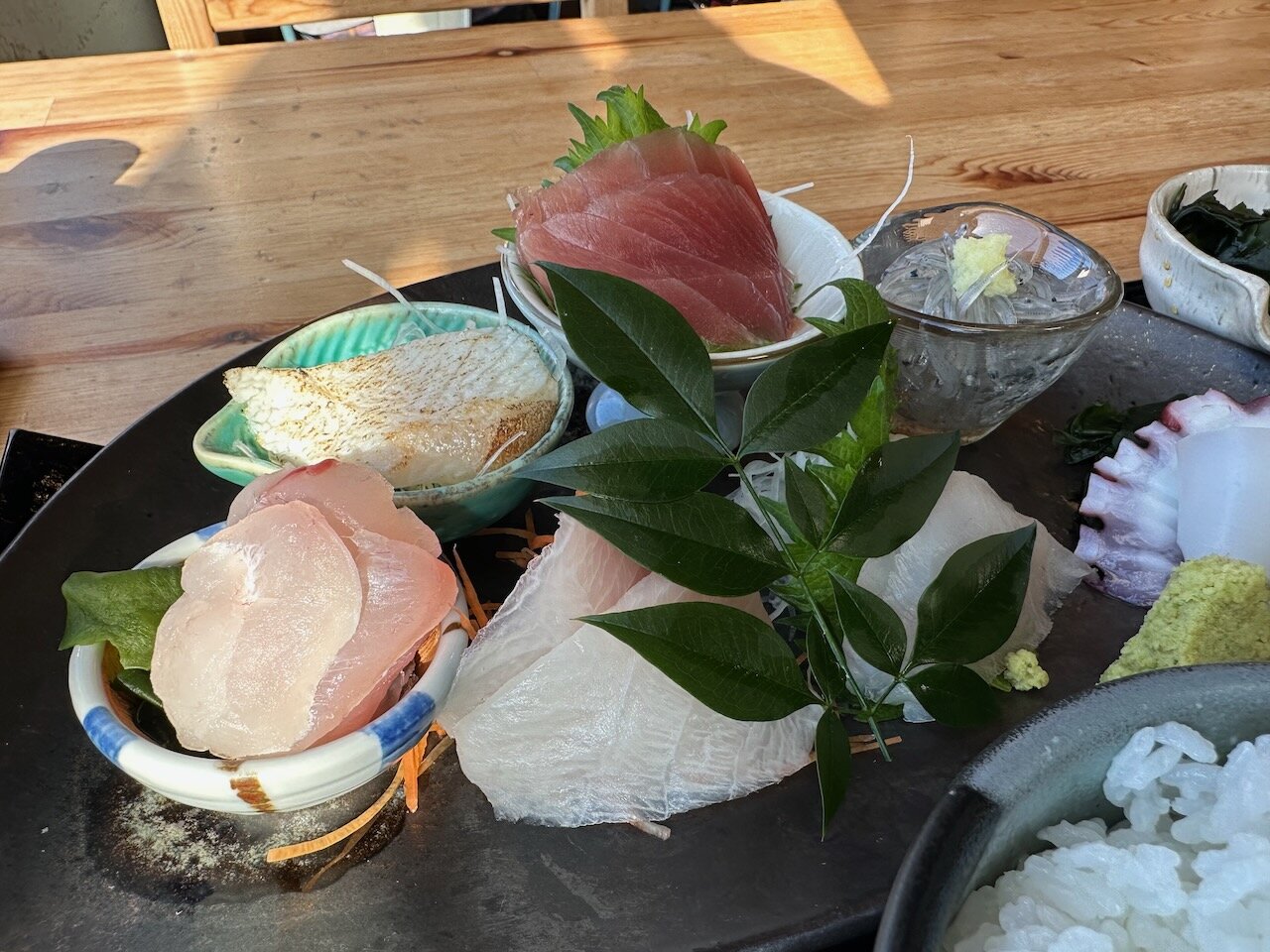 白身魚は大変甘みのつよい新鮮なもので、わさび醬油と白米に最高に合う!