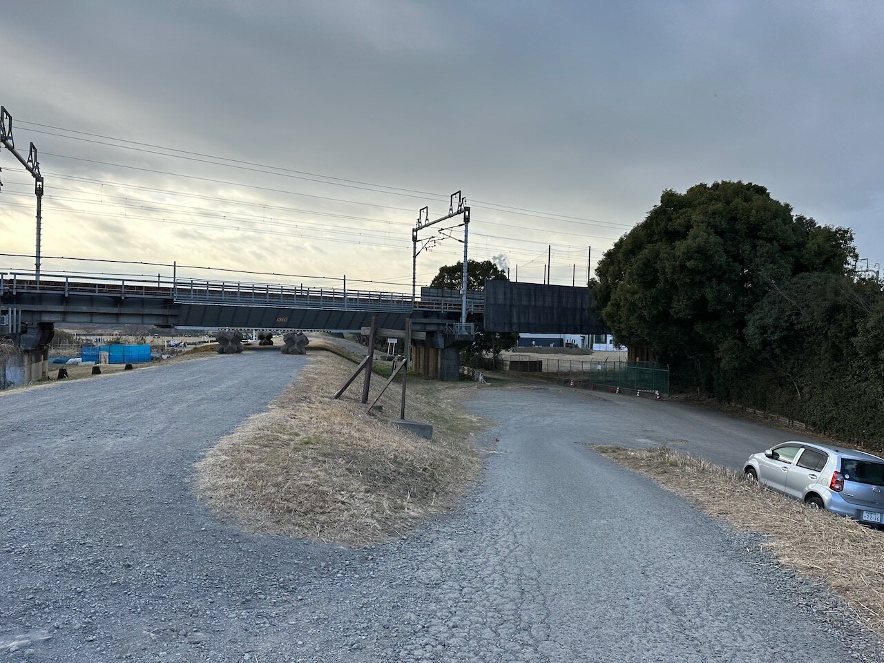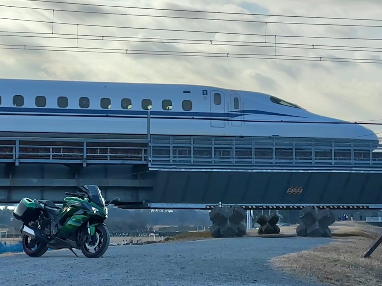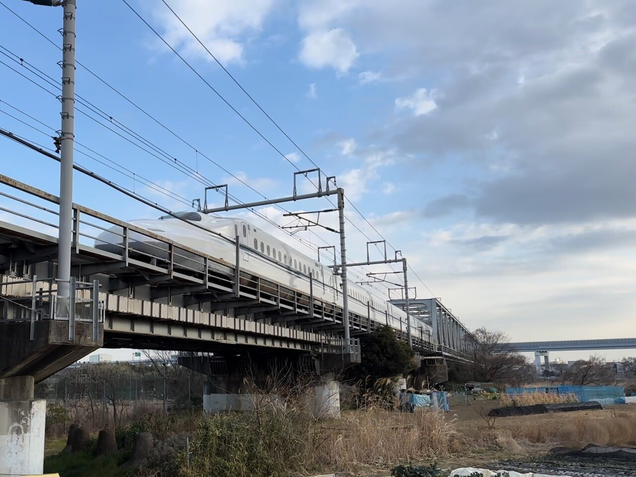河川敷にあがれば、ほぼ真下のこのアングルから新幹線を眺めることができます。