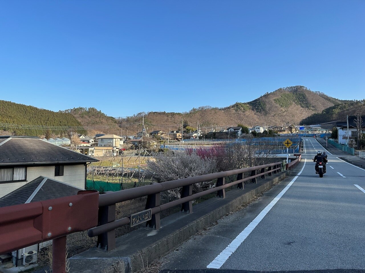 沿道に梅の花の広がる風景を見ながら農道を南下。