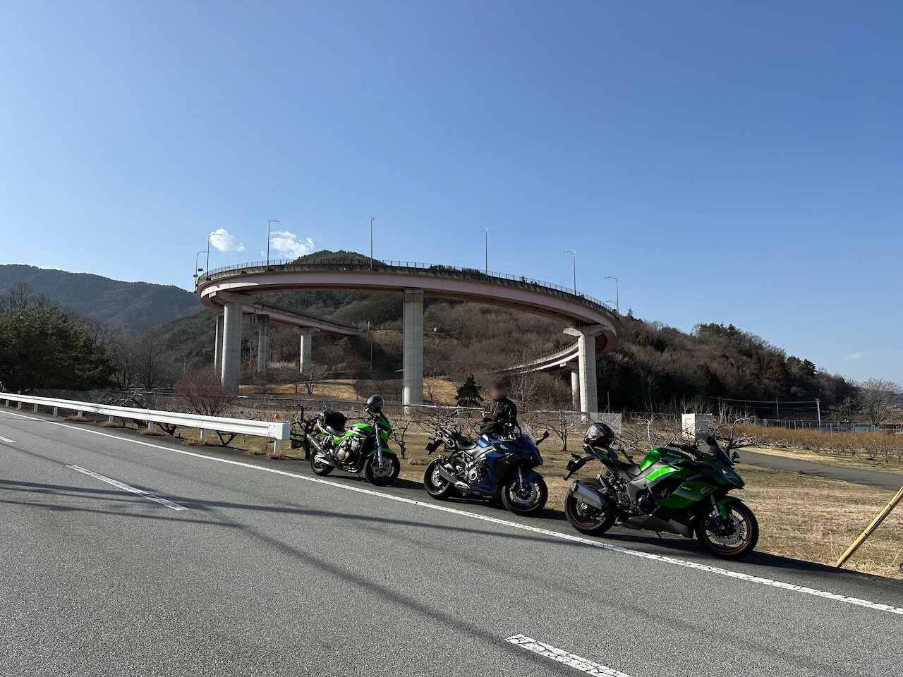 メンバーは先頭の画像の通り、ZRX1200RとGSX-S1000GTとの3台体制です。