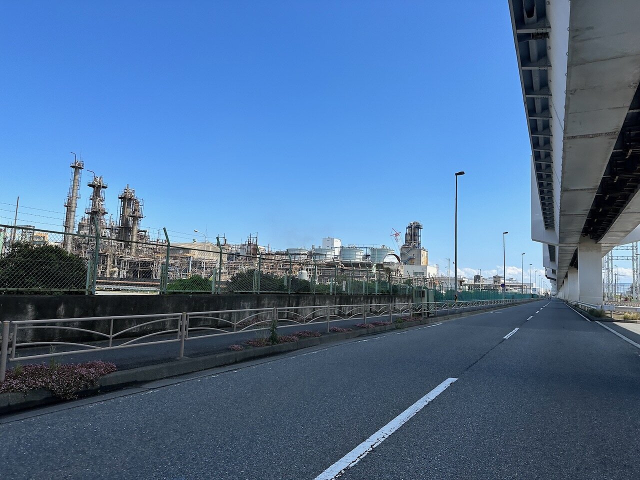 その先で国道は湾岸の埋立地を通るようになり、右も左も工業地帯。