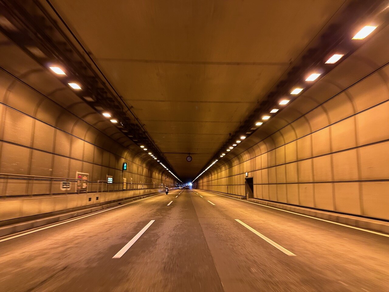 B滑走路の真下をくぐるトンネルで、空港島へ向けて進みます。