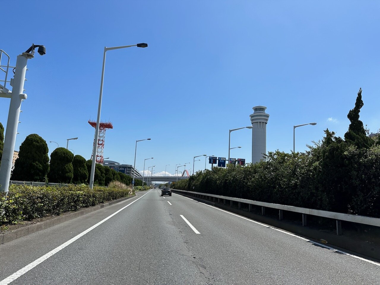 数年前までは整備場や空き地の広がる殺風景な場所でしたが、国際線を主に扱う第三ターミナルができてからは、沿道にも彩りが増えました。