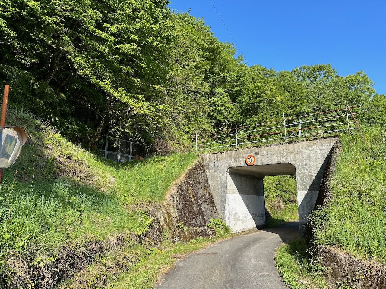 この区間は国道の突き当たりにあった小学校の通学路として活用された関係で、このように人が歩けるように整備されているとのこと。