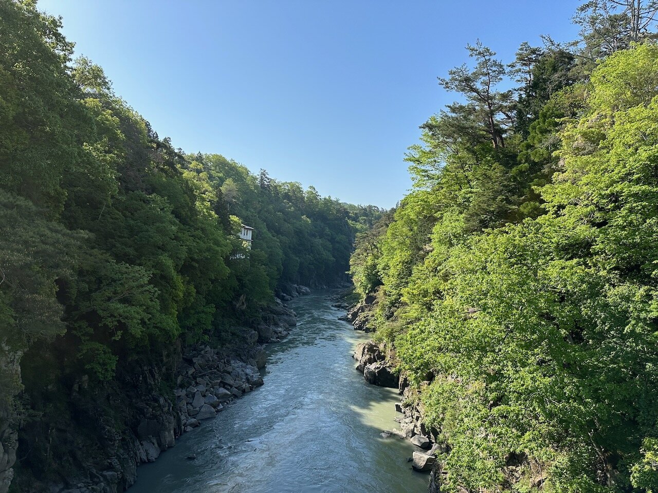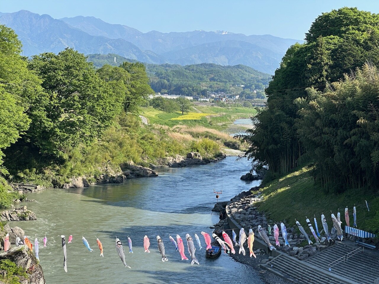 川には5月らしく鯉のぼりが渡されており、そよそよと峡谷を抜ける風に気持ちよくなびいています。