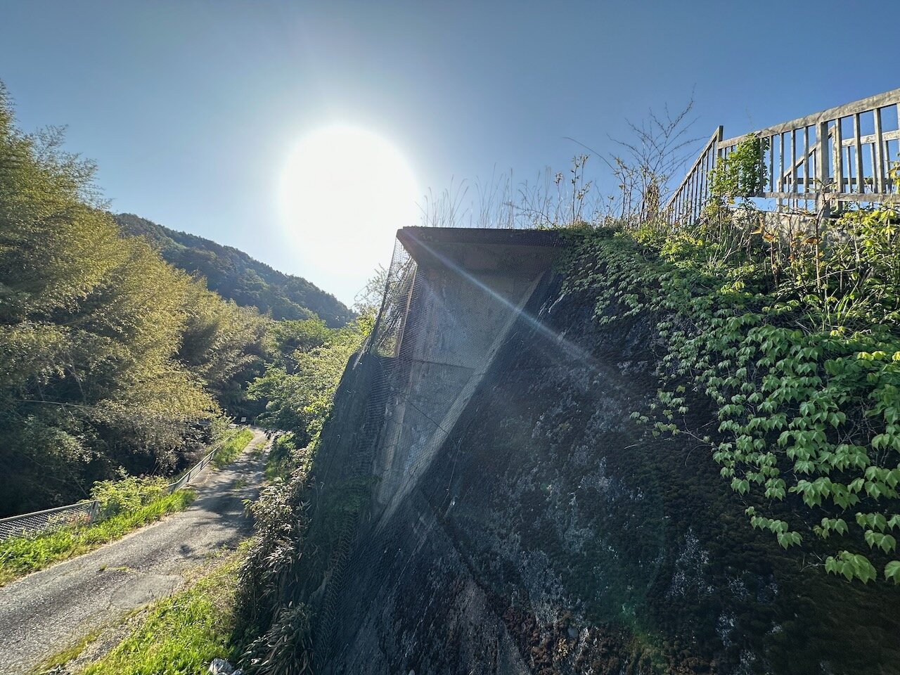 ダムを眺めたら、一旦戻って迂回路にぐるりと回りこみ、左岸側を抜けます。