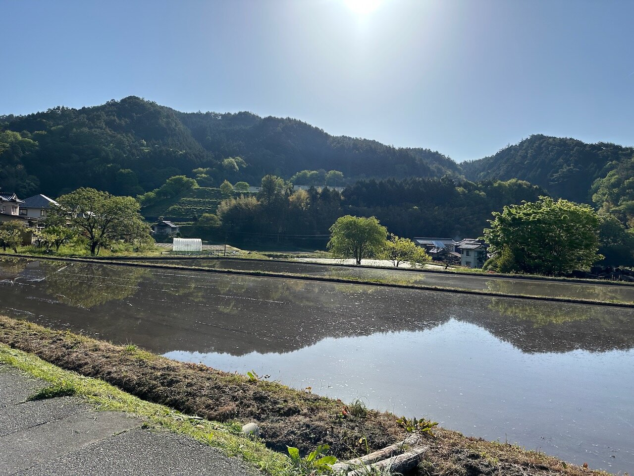 田んぼには水が張られていて、山の稜線が綺麗に映り込みます。