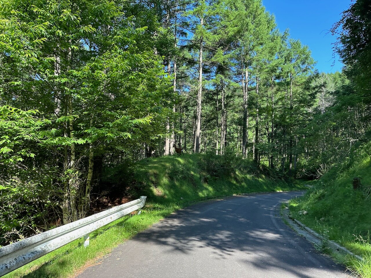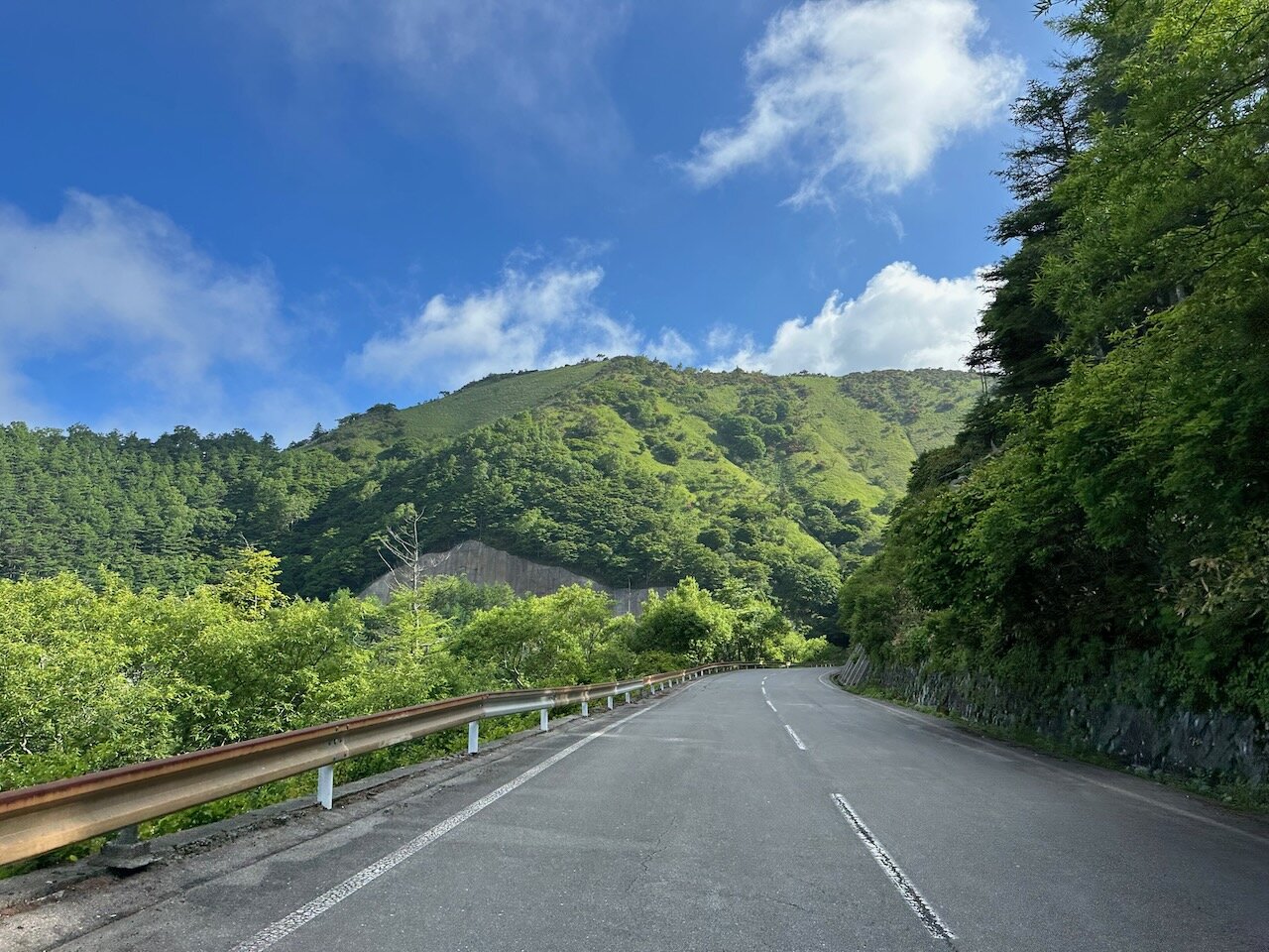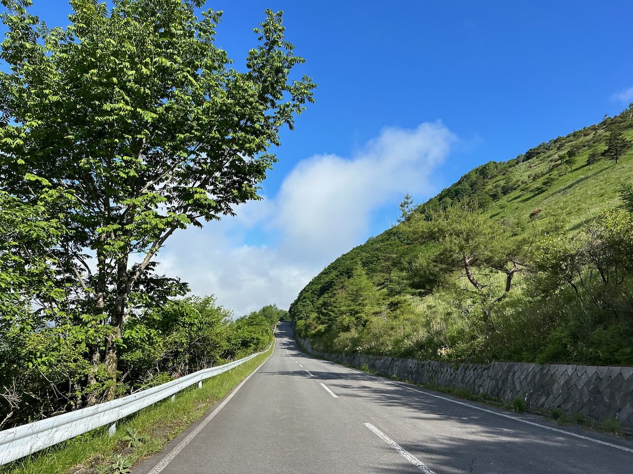 1.5車線で落石がチラホラありますが、アザレアラインよりこちらのほうが舗装が新しいので楽しく走れます。