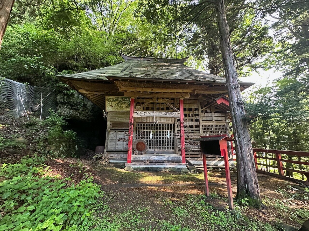 大門の集落を過ぎて少しいったところで、道路脇に鳥居がチラ見え。